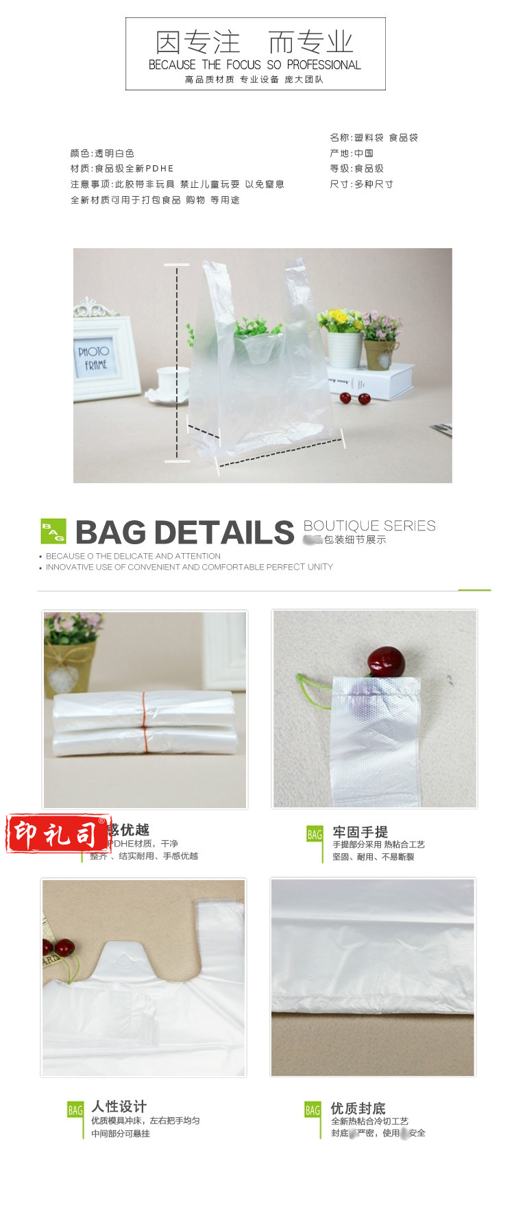 白色食品袋 塑料袋 25号约100个/捆 尺寸25*40cm