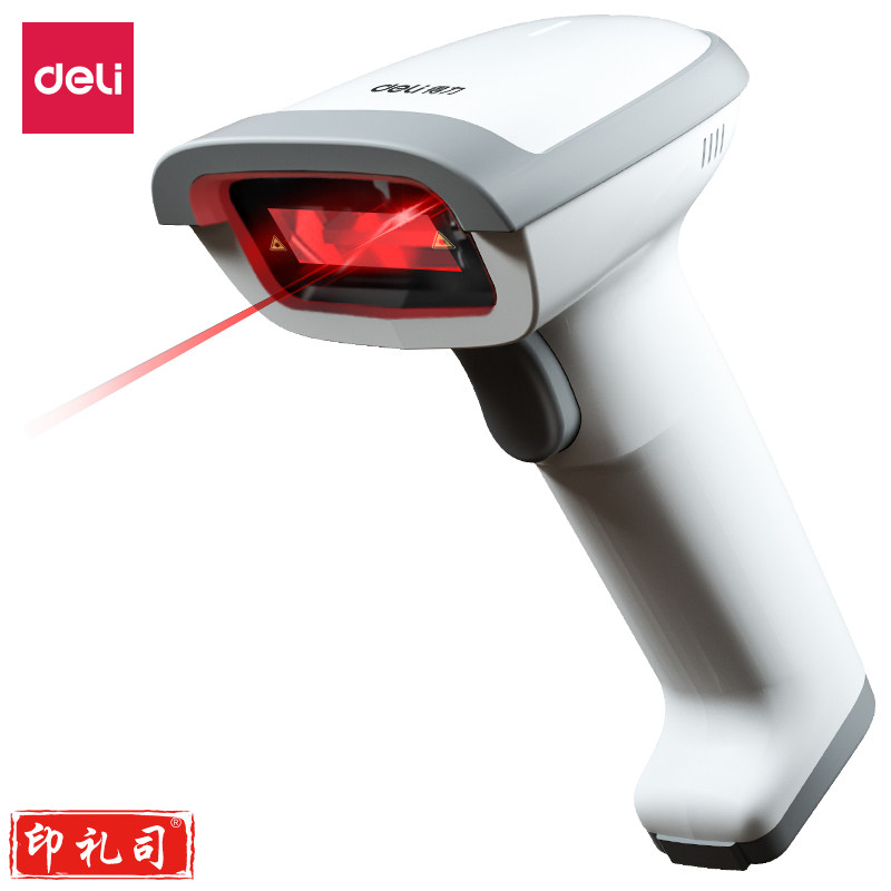 得力14881S(白)激光条码扫描器(台) 手持式一维纸质条码无线扫码枪 仓储物流盘点