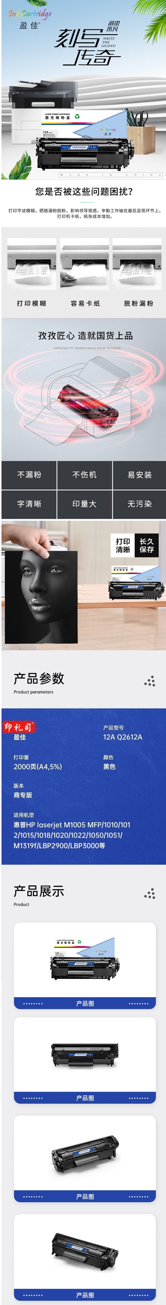 盈佳12A Q2612A 激光碳粉盒/硒鼓 商专版 黑色适用于惠普HP laserjet M1005 MFP 1010 1012 1015 1018 1020 1022