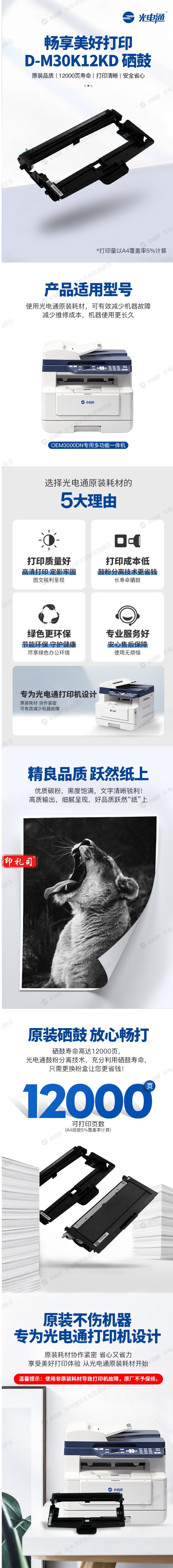 光电通 D-M30K12KD 原装硒鼓 全国产化信创鼓粉 适用于OEM3000DN专用多功能一体机