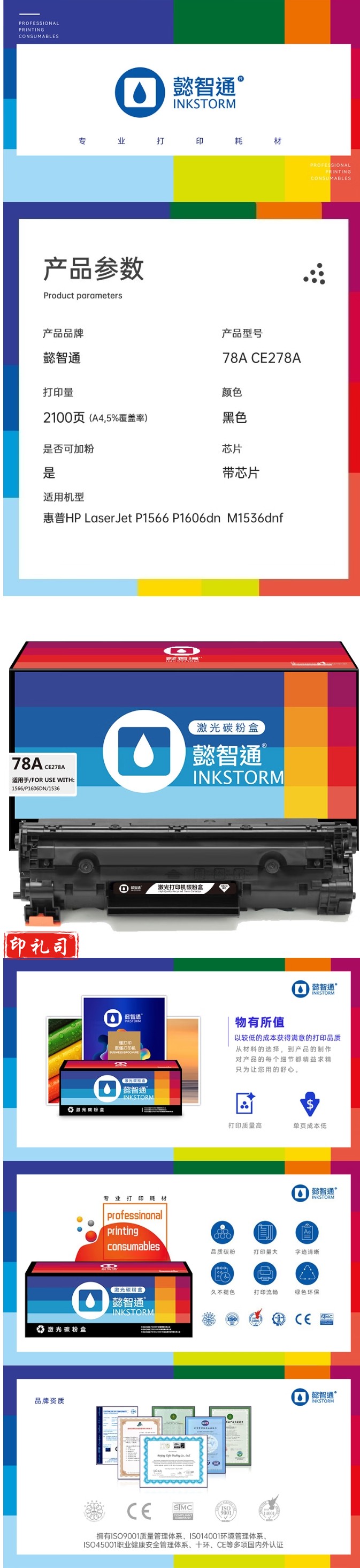 懿智通YZT CE278A黑色硒鼓(带芯片)适用于:HP LaserJet P1566 P1606dn(计价单位:个)