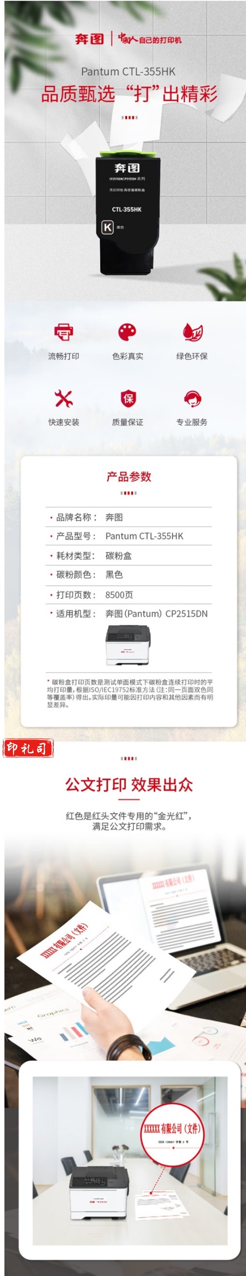 奔图(PANTUM)CTL-355HK黑色粉盒(适用于CP2515DN打印机)