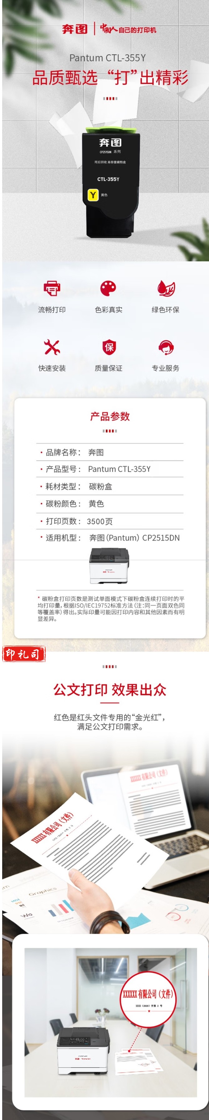 奔图(PANTUM)原装CTL-355Y 黄色 碳粉盒 适用于(CP2515DN)