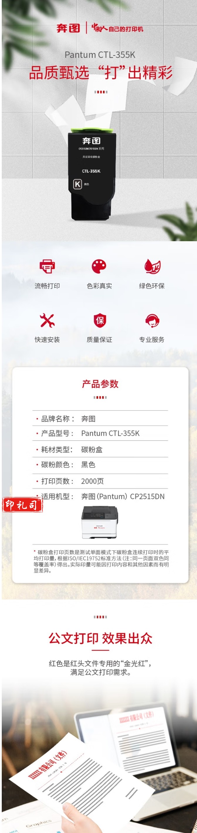 奔图(PANTUM)原装CTL-355K 黑色 碳粉盒 适用于(CP2515DN)