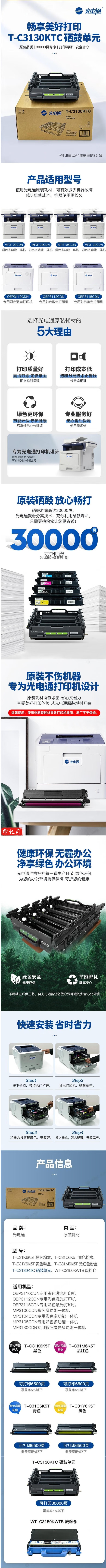 光电通 T-C3130KTC 原装硒鼓单元(适用OEP3110CDN/3112/3115/MP3100CDN/3104/3105/MF3130CDN)