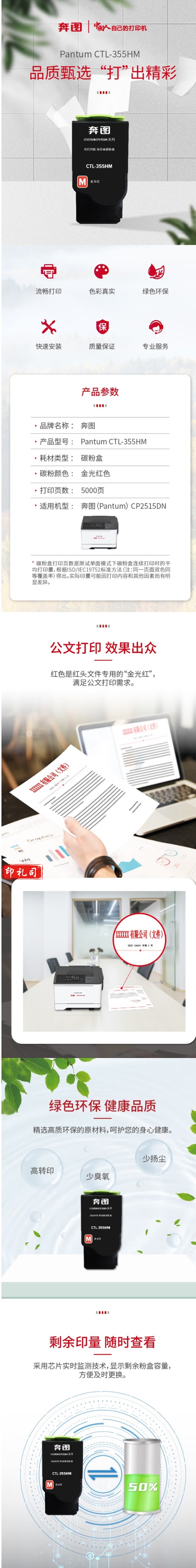 奔图(Pantum)CTL-355HM 红色大容粉盒 适用于(CP2515DN打印机)