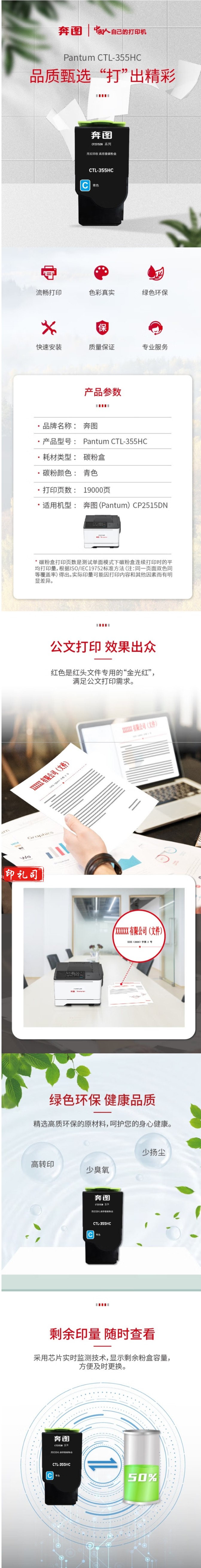 奔图 CTL-355HC 蓝色大容粉盒 适用于(CP2515DN打印机)CTL-355HC