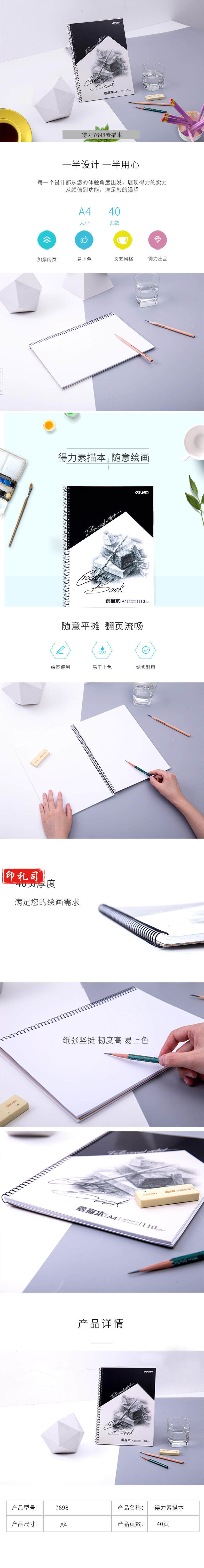 得力7698美术纸本210mm*297mm-110g-40页(蓝)(本)