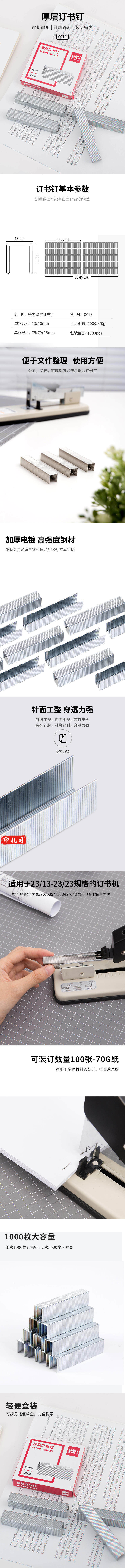 得力0013厚层钉书钉23/13(1000枚/盒)(5盒/包)单位:盒