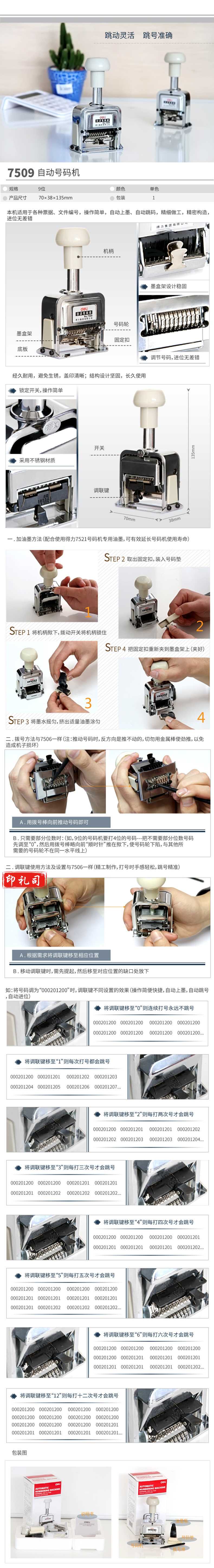得力7509九位自动号码机(白)(台)