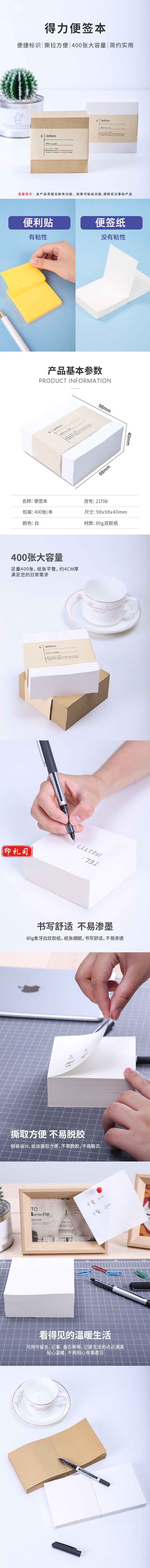 得力(deli)400张98*98mm简洁白色便筏本便条本便签纸便签本子21708
