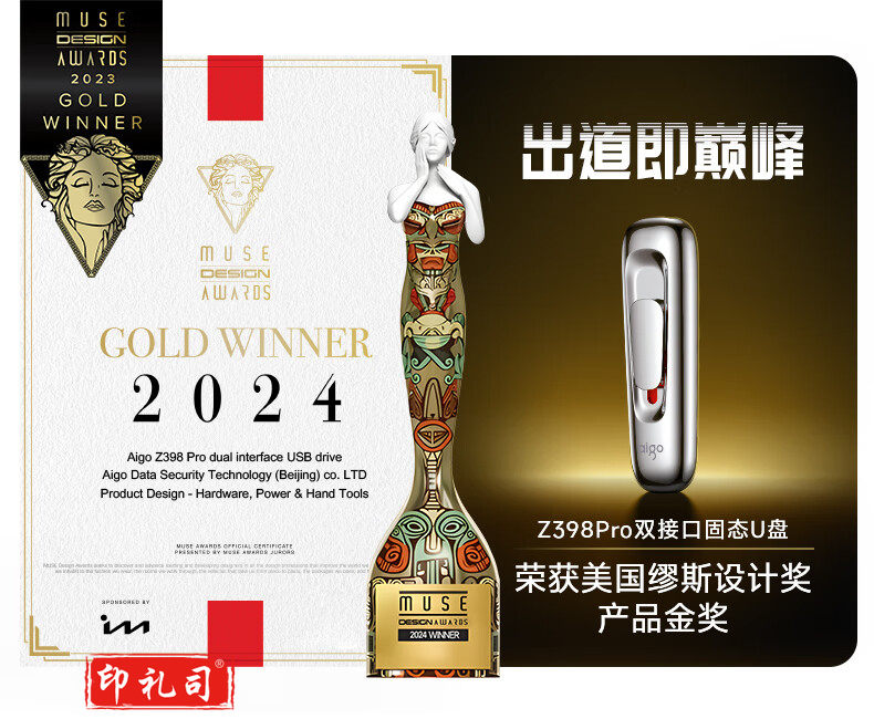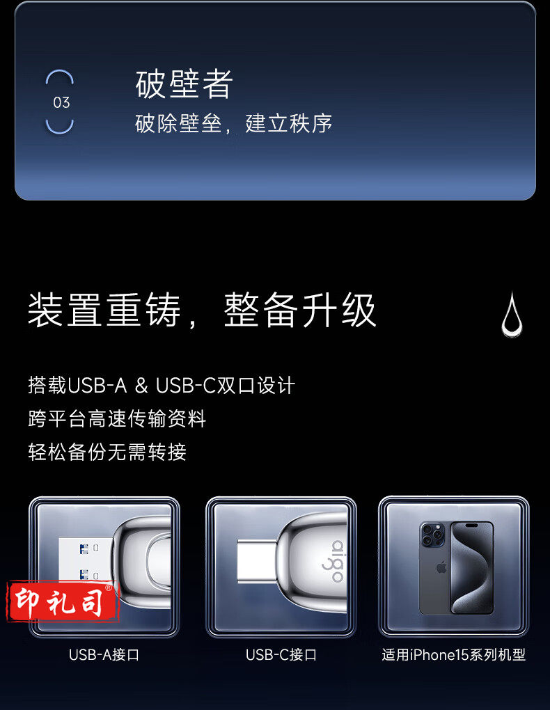 爱国者(aigo)256GBUSB3.2Type-C双接口高速固态U盘Z398Pro银色读速1070MB/s大容量手机电脑两用优盘