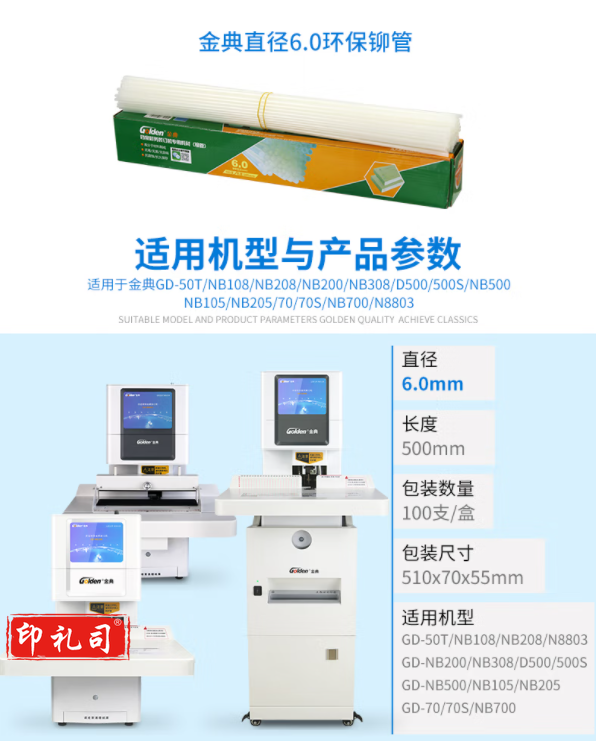 金典(GOLDEN)装订机装订管财务装订机铆管6.0mm 100支/盒