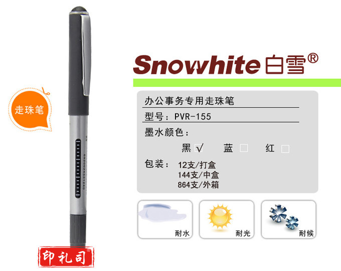 白雪 PVR-155 黑色 直液式走珠笔 0.5 (12支/盒)(可当天配送发货)