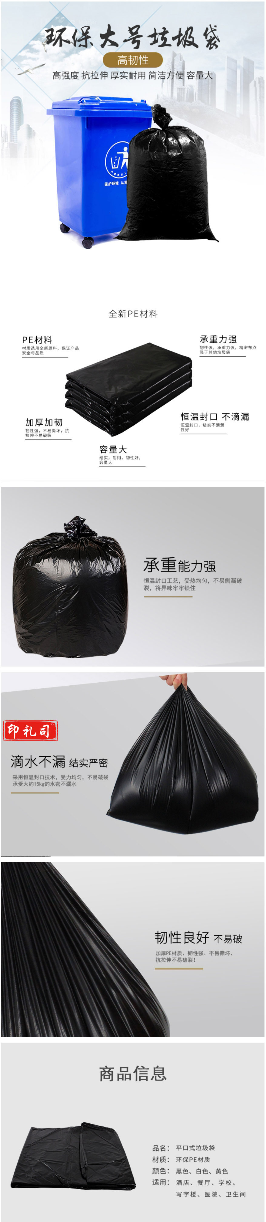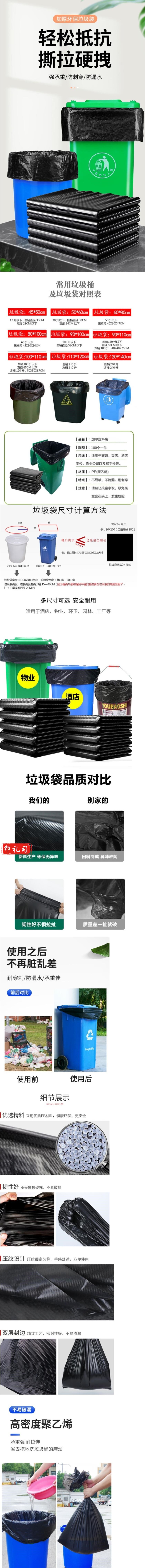 欧菲思达 100*110cm 黑色平口垃圾袋 厚度4.43丝(单位 个)