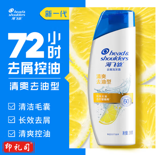 海飞丝洗发水清爽去油洗发水控油200g(持久去屑清爽柔润)柠檬香