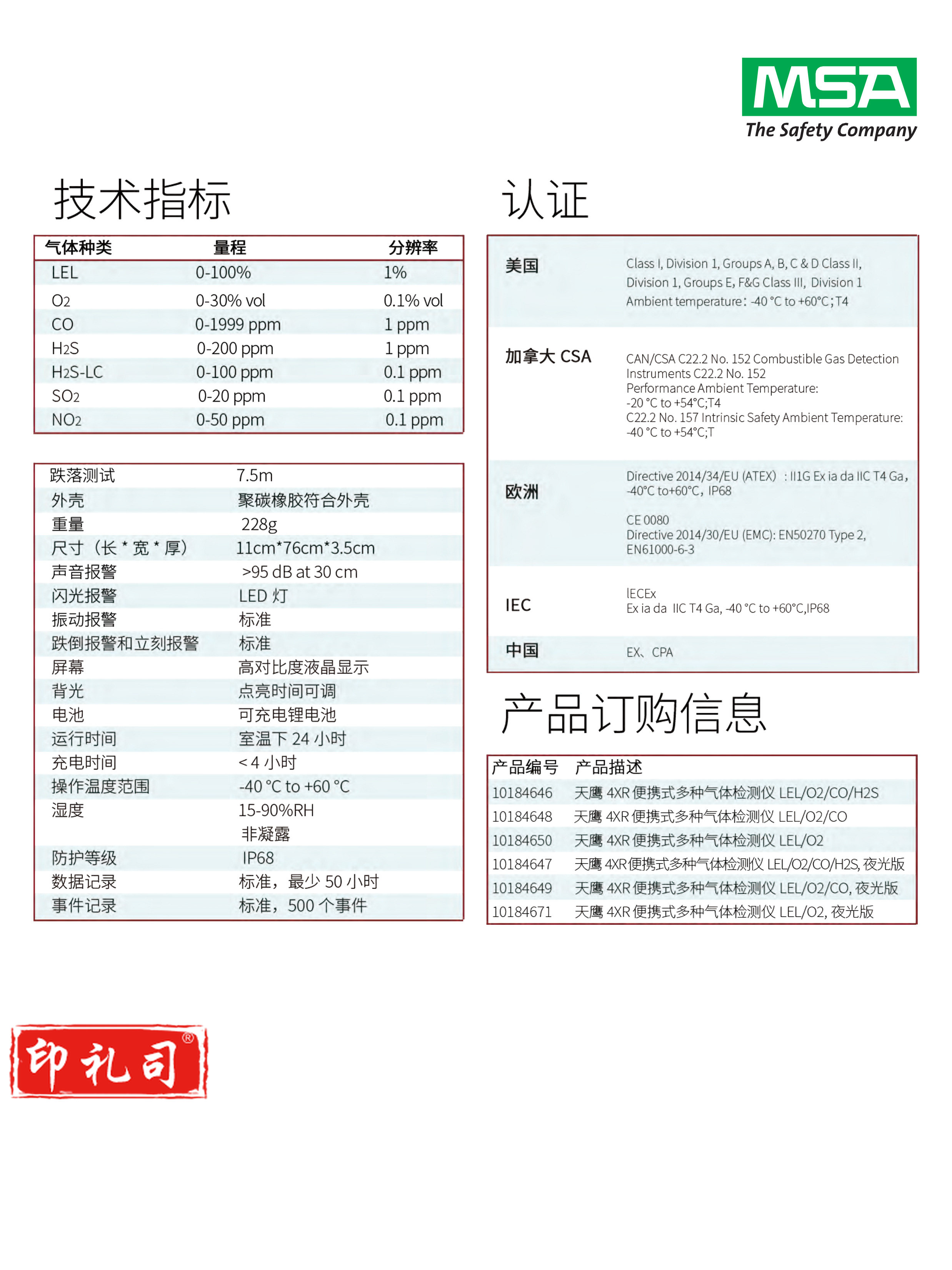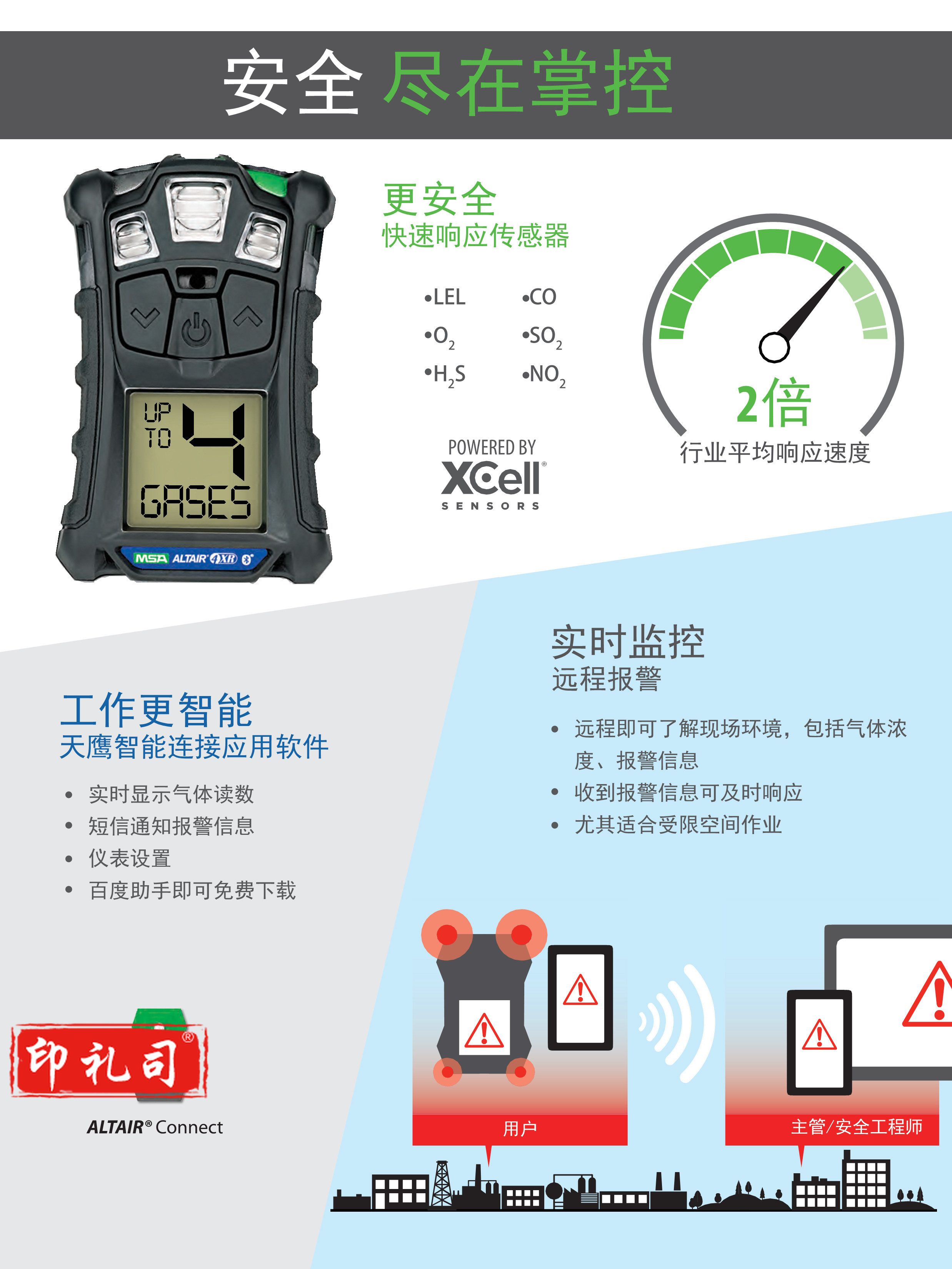 梅思安MSA四合一气体检测仪天鹰第二代4XR智能便携式气体检测仪 氧气 一氧化碳 硫化氢 可燃气