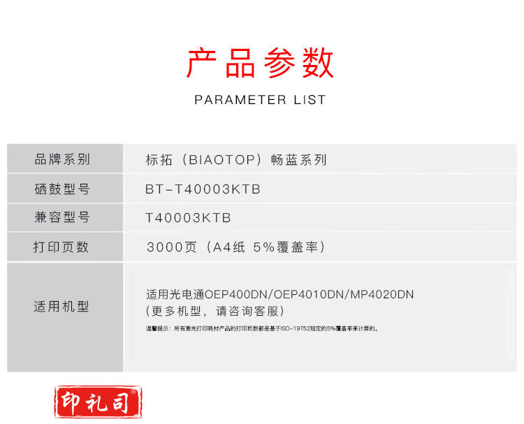 标拓BT-T40003KTB粉盒 适合光电通OEF400DN OEP4010D 4010DN MP4020DN MP4030DN打印机