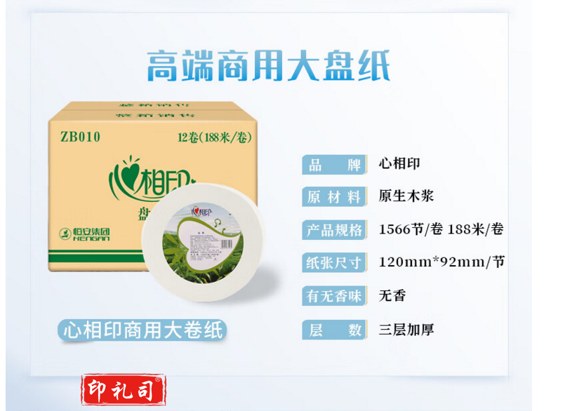心相印大卷纸大盘纸3层188米12卷 ZB010卫生纸手纸厕纸纸巾卷筒纸酒店企业宾馆商务公用整箱