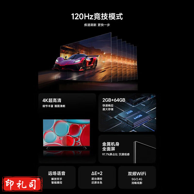 电视Redmi AI X75英寸 远场语音 2+64GB 120HZ 4K超高清 可投屏智能平板电视机