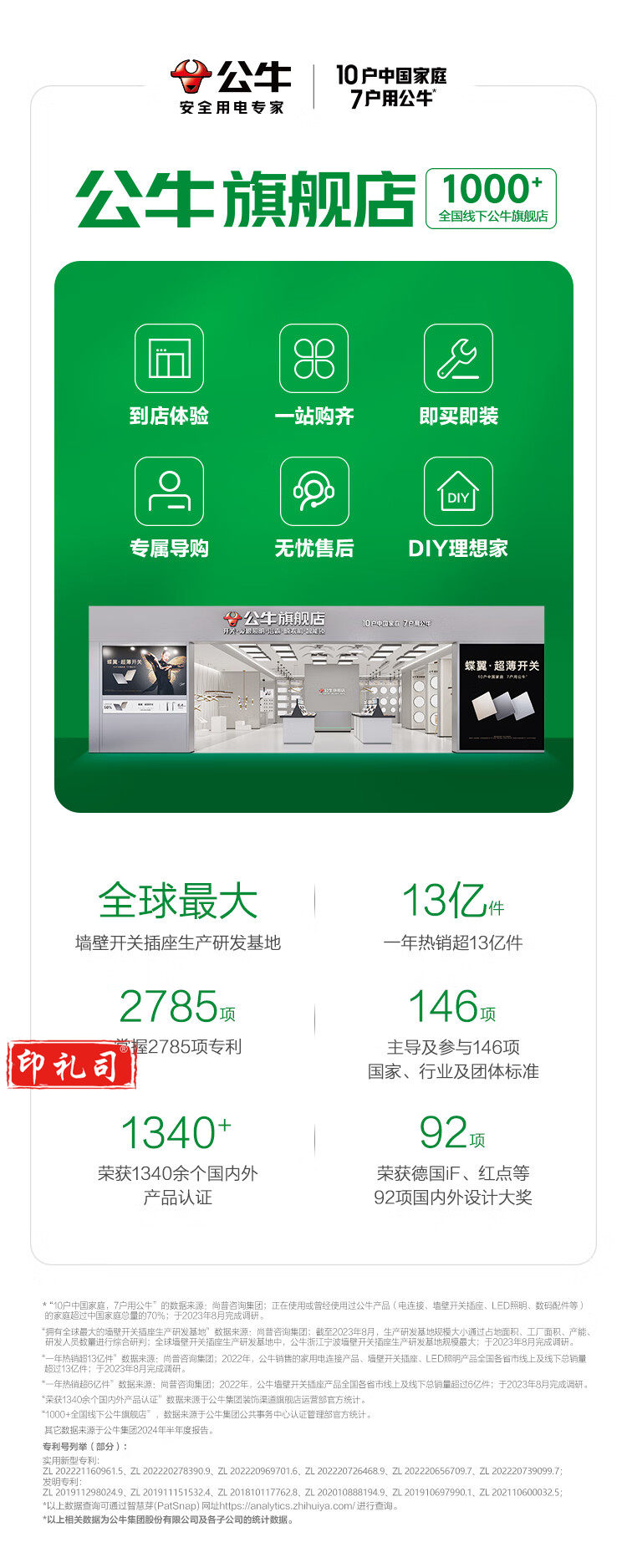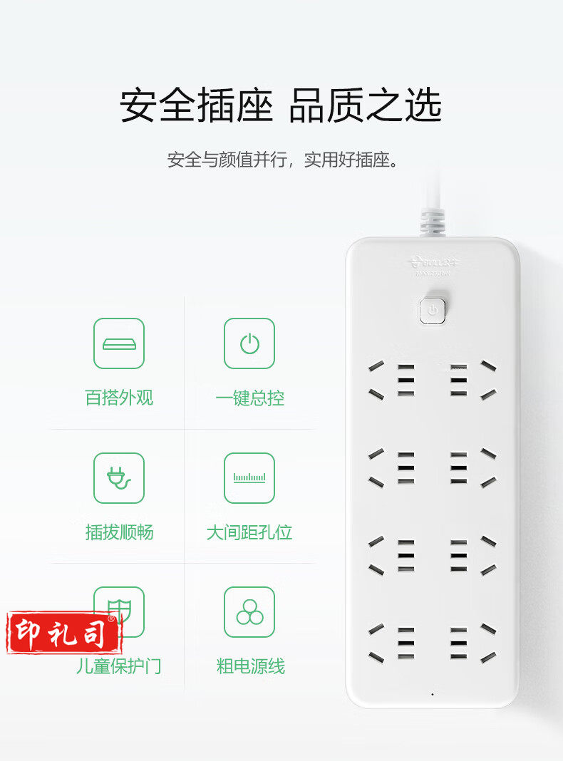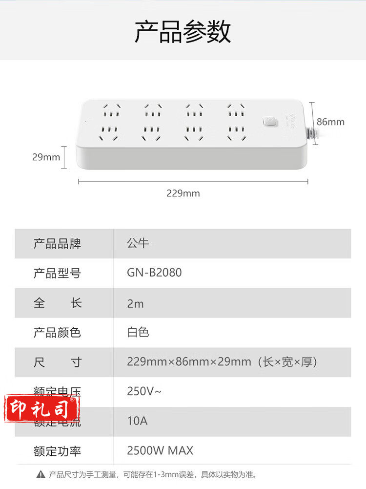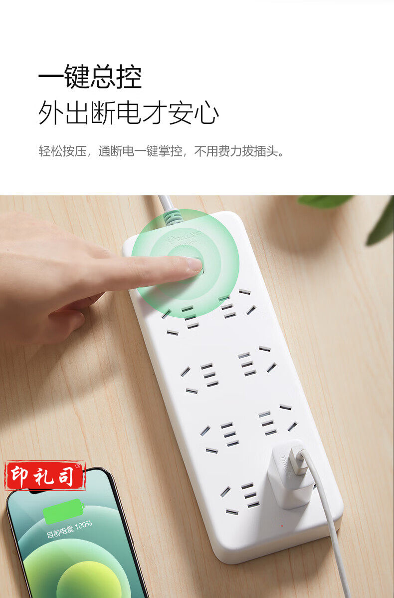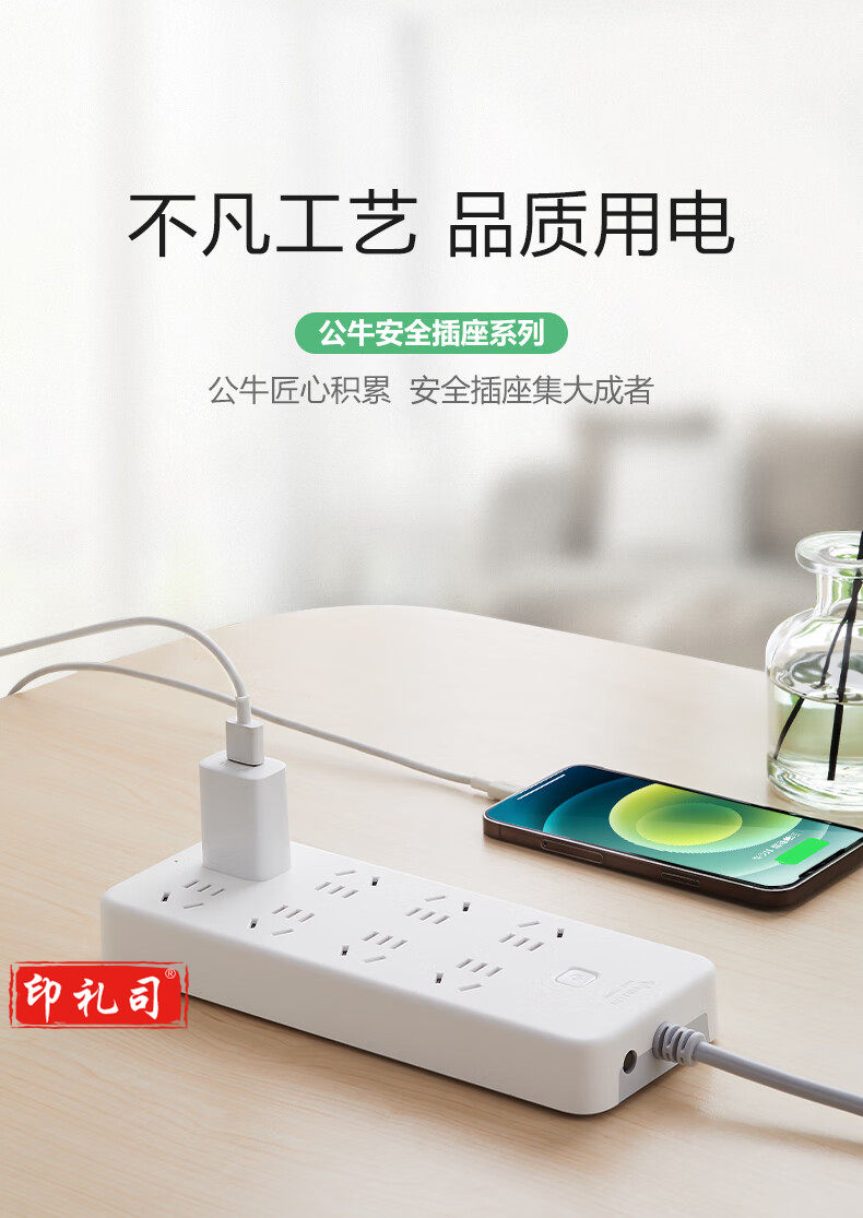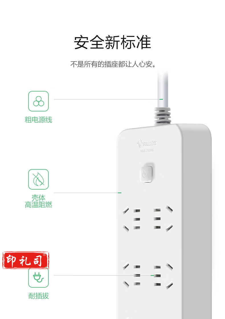 公牛(BULL)超功率保护 新国标插座/插线板/插排/排插/接线板/拖线板 GN-B2080 8位总控开关全长2米