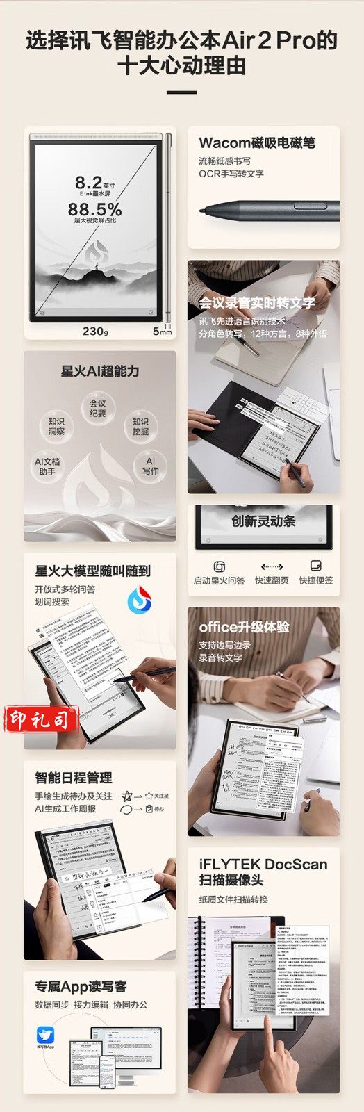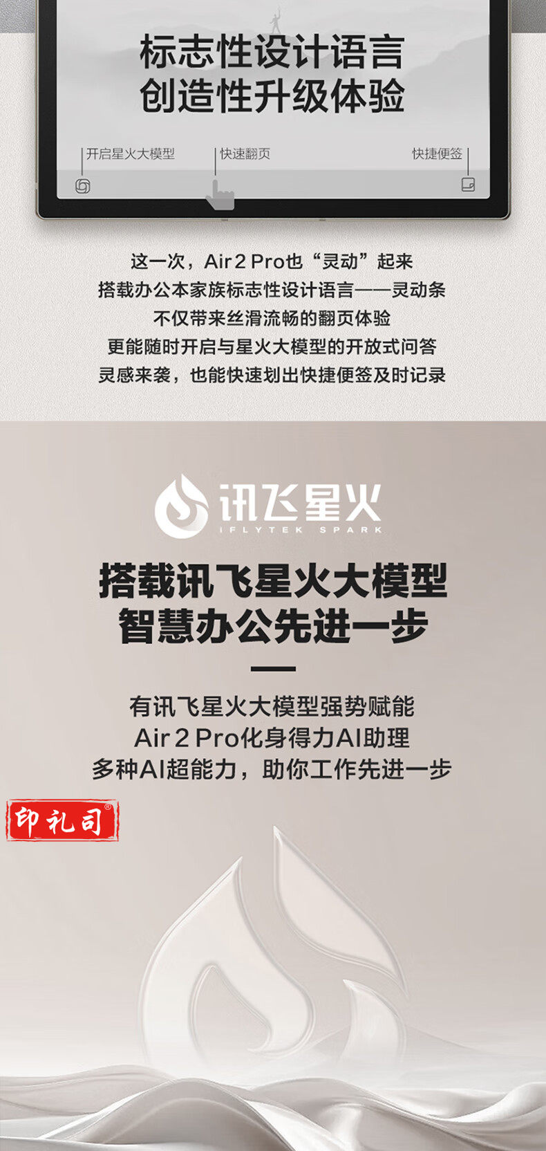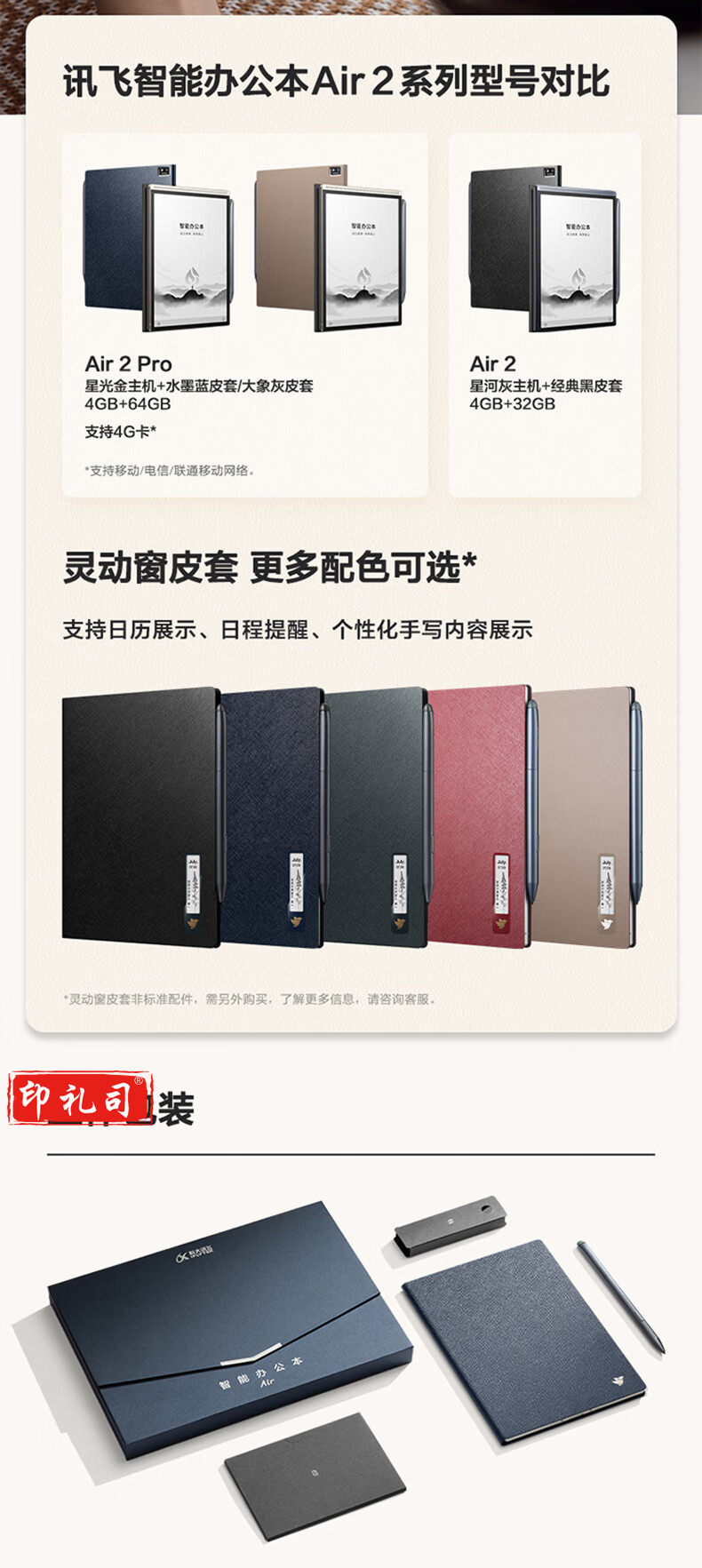 科大讯飞智能办公本Air 2 Pro星光金-水墨蓝 8.2英寸电子书墨水屏平板电脑 电纸书 语音转文字
