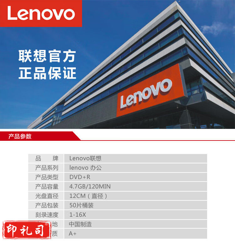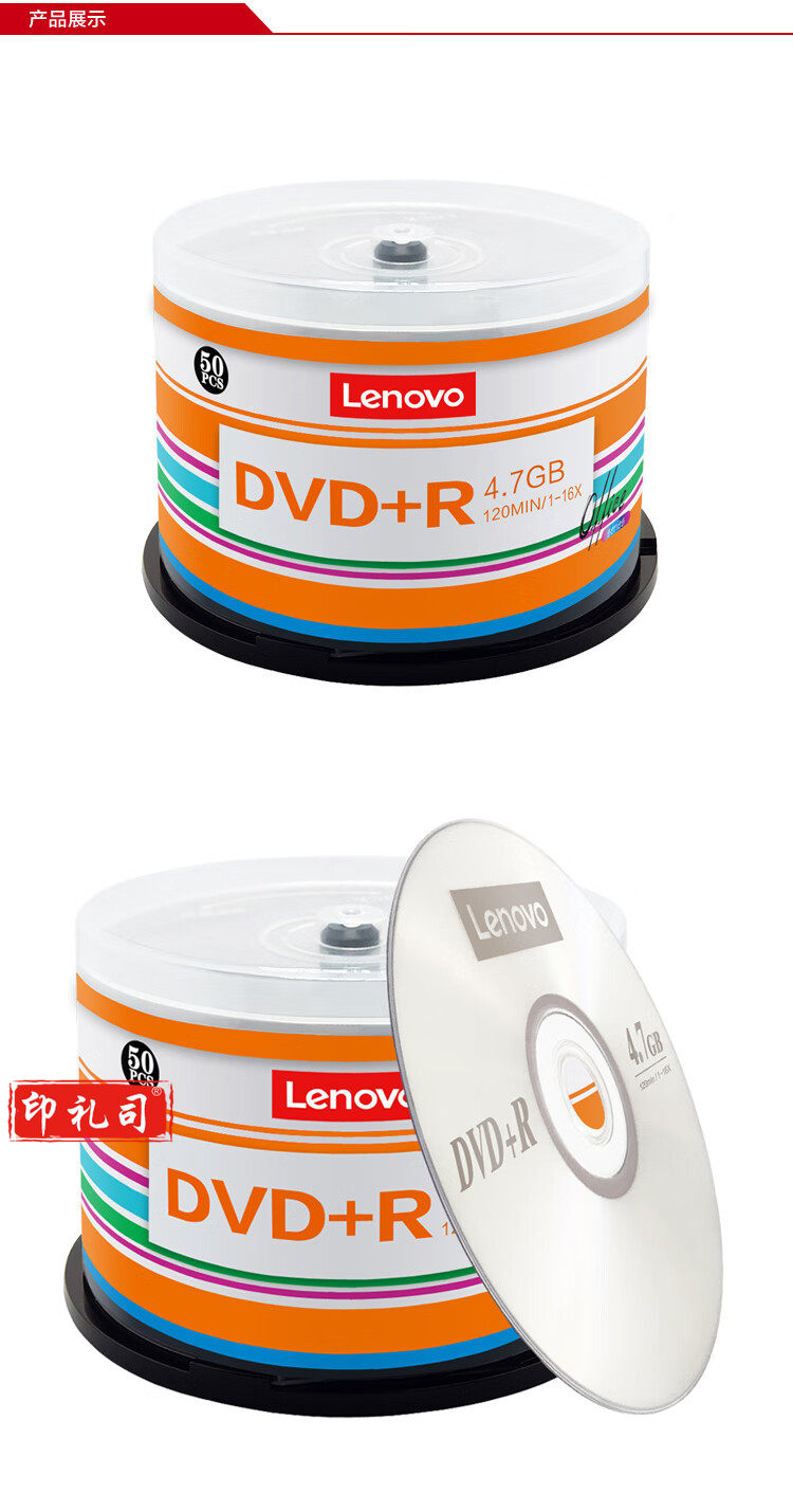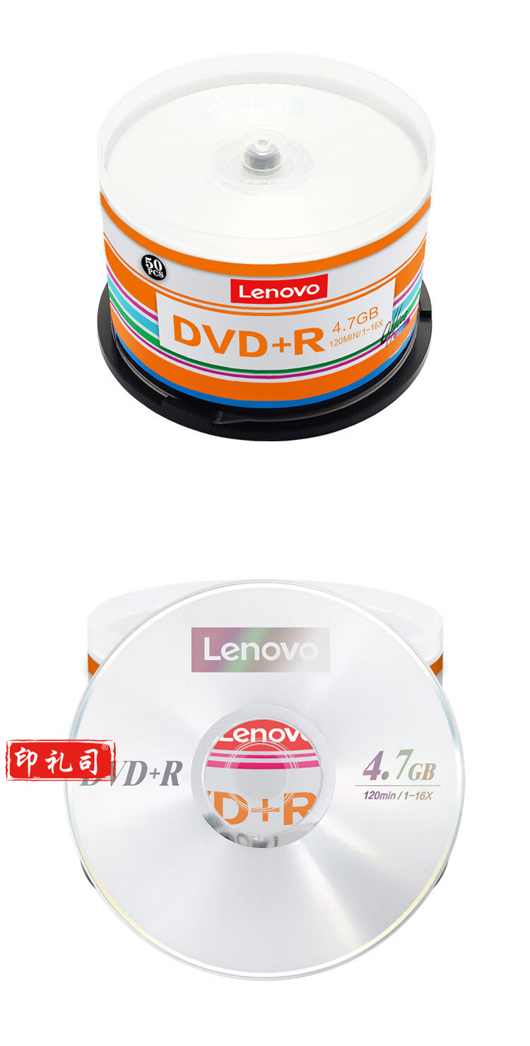 联想(Lenovo)DVD+R 光盘/刻录盘 16速4.7GB 办公系列 桶装50片 空白光盘