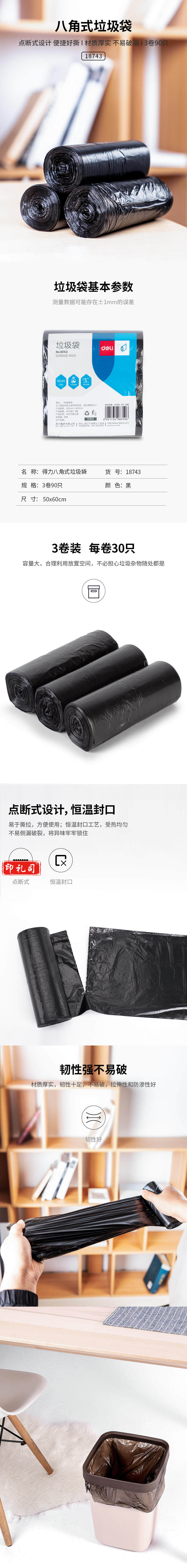 得力垃圾袋 50*60cm 黑色 (30只/卷)(3卷/包)18743