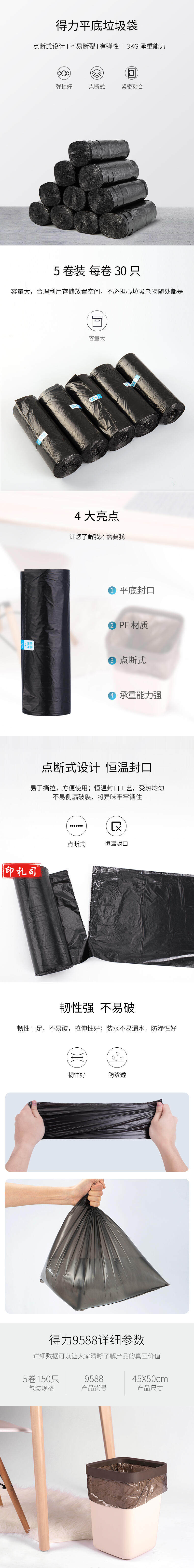 得力平底垃圾袋 45*50cm 黑色(30只/卷)(5卷/包)9588