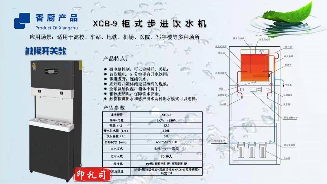 香厨商用厨房设备不锈钢柜式步进式净水器开水器一体直饮机