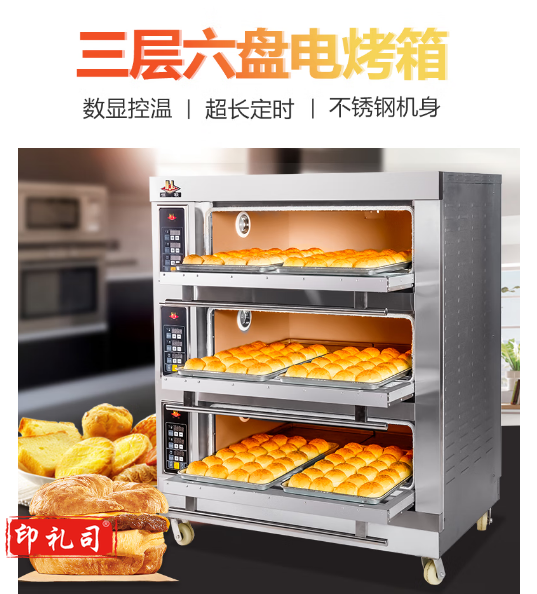 恒联 大型商用烤箱 商用厨房设备单位食堂医院学校酒店三层六盘微电脑控制披萨蛋糕面包烘焙电烘炉 全不锈钢外壳款 GL-6CS