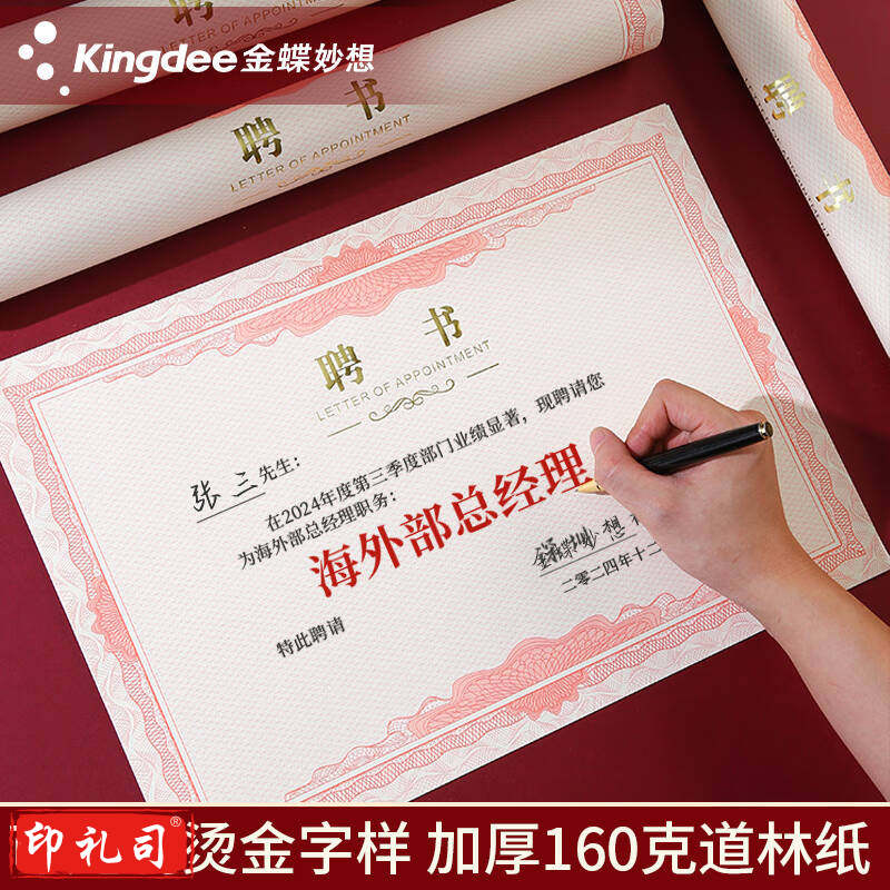 聘书配套内芯纸 20张任命书证书奖状内页 企业公司学校聘用证书内芯297*210mm