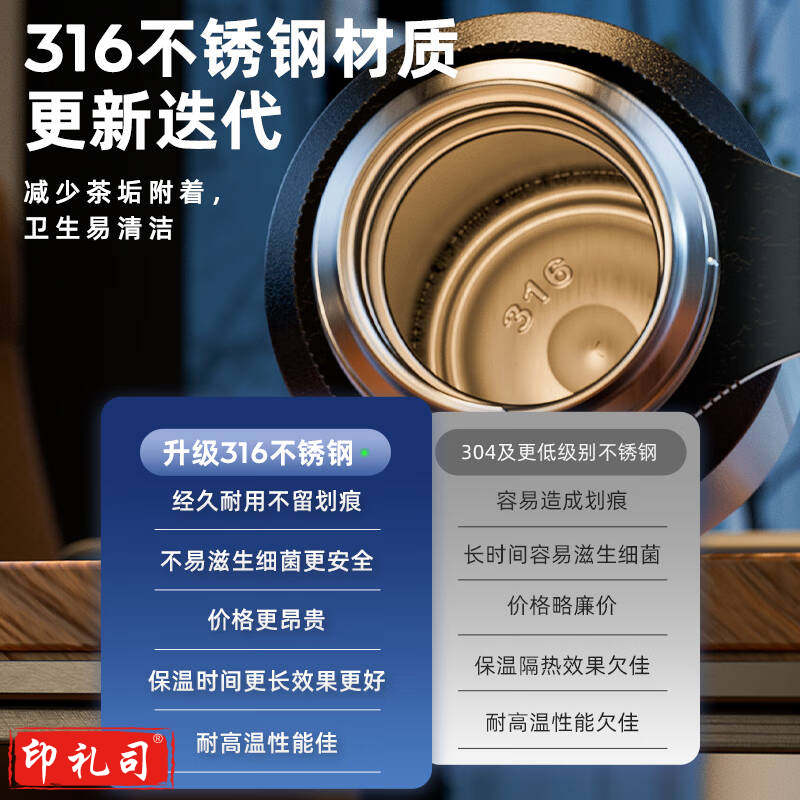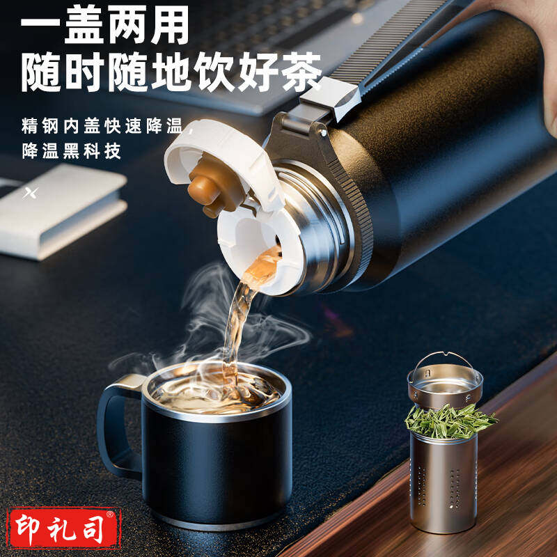 保温杯大容量316不锈钢男士焖泡茶杯茶水分离高颜值商务便携水杯曜石黑【316+茶水分离】800ml