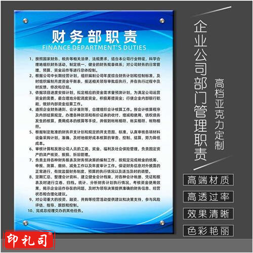 亚克力制度牌 职责牌 公示牌 标识牌34*45cm
