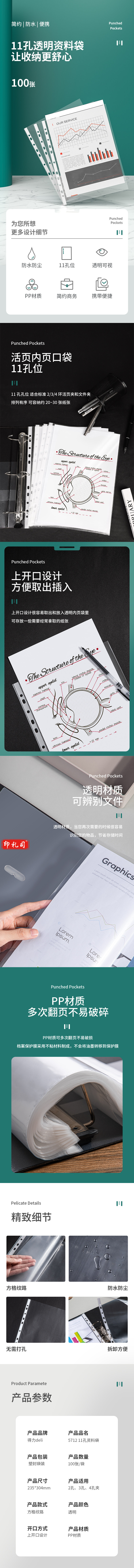 得力11孔A 4资料袋 (透明)(100个装) 5712