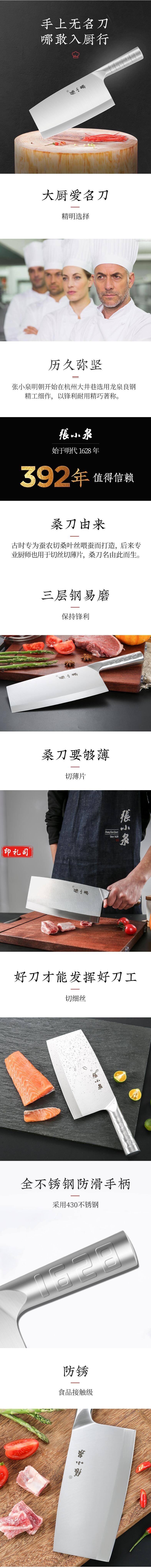 张小泉菜刀 厨房刀 家用厨师桑刀 切片刀 斩切刀 不锈钢菜刀