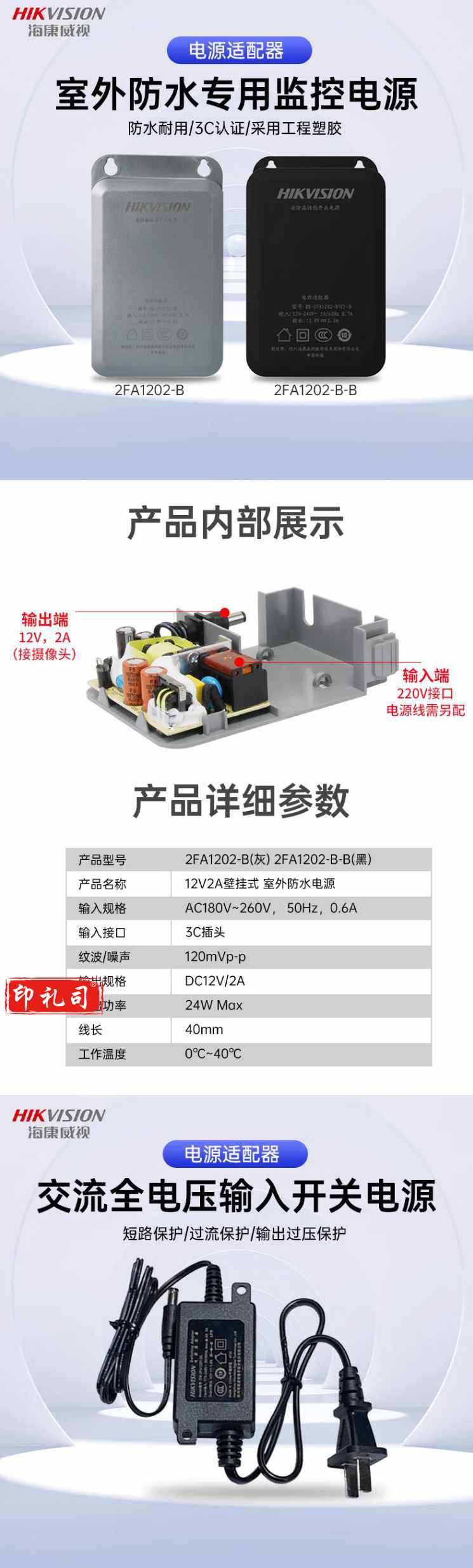 海康威视 DC12V 2A电源 监控摄像头电源适配器 防水电源