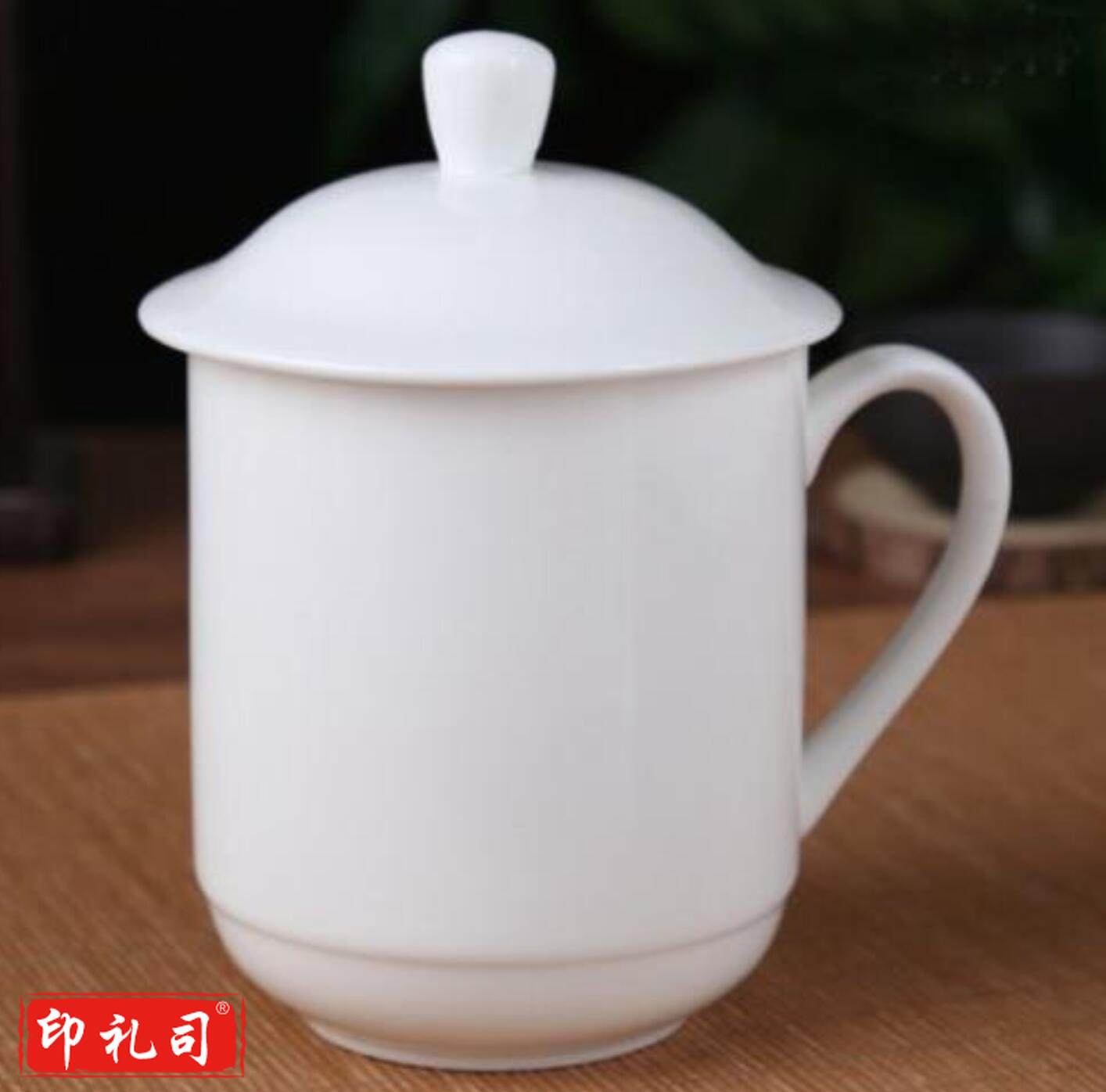 盖茶杯 办公杯陶瓷杯纯白瓷盖杯商务会议杯宾馆酒店开会水杯