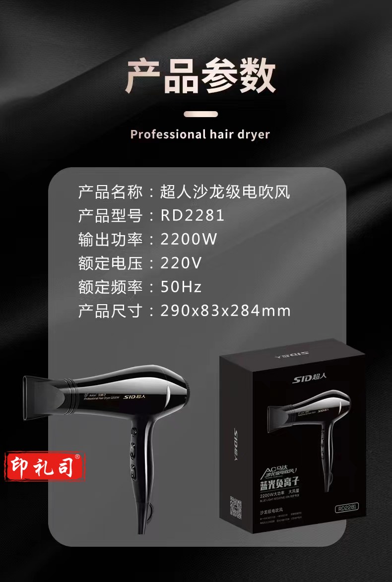 超人电吹风机 大功率蓝光负离子护发 家用旅行发廊吹风机RD2281