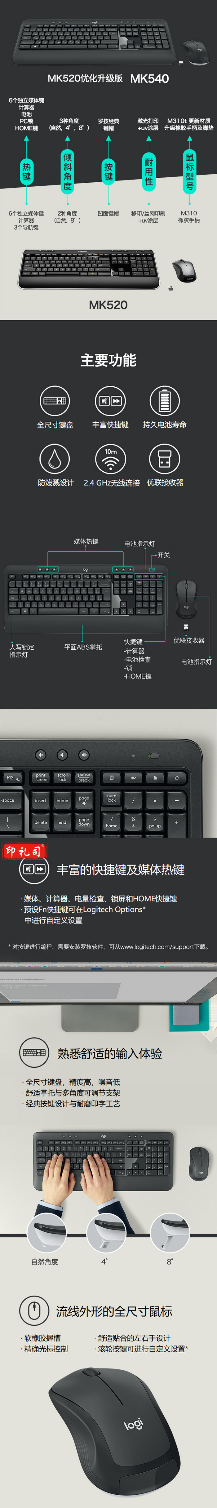 罗技(Logitech) MK540 键鼠套装 无线键盘鼠标套装