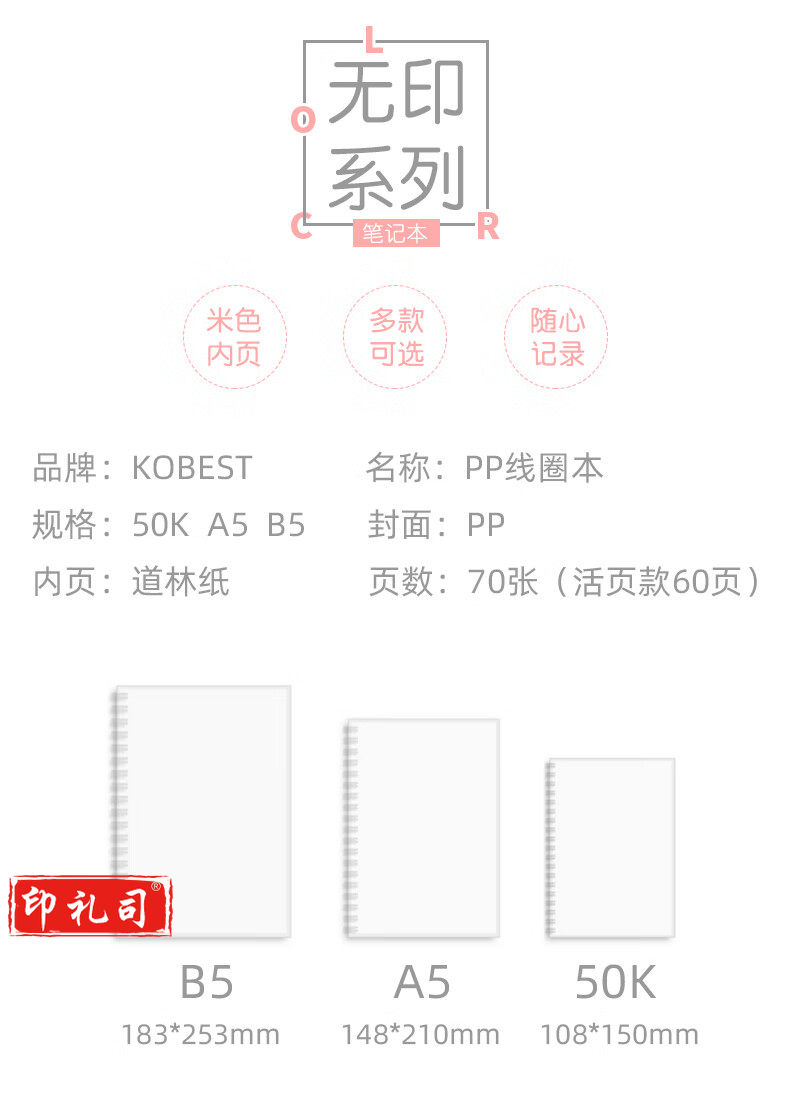 康百原素线圈笔记本a5小清新活页夹多功能文艺手账本b5简约ins风方格本学生随身便携记录 A5内页横线款-40页(JA5201)