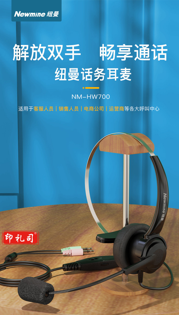纽曼(Newmine) NM-HW700 单耳商务话务耳机 头戴式客服呼叫中心耳麦3.5mm双插接口