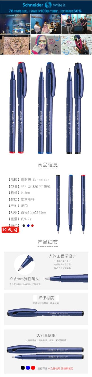 施耐德(Schneider) 走珠笔847蓝色0.5mm 8473