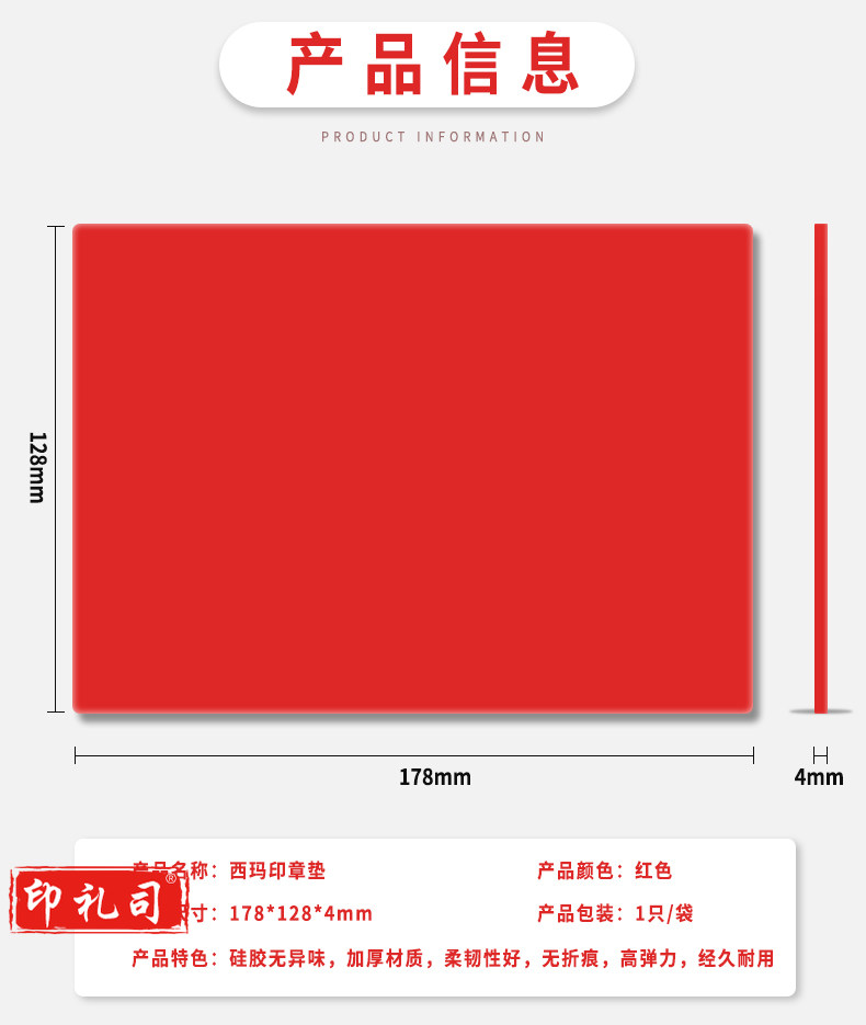 西玛(SIMAA)5个装财务印章专用垫 印章胶垫银行敲章垫 印章垫 方形盖章垫 厚4mm 红色 厂直发货