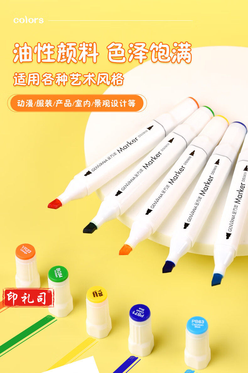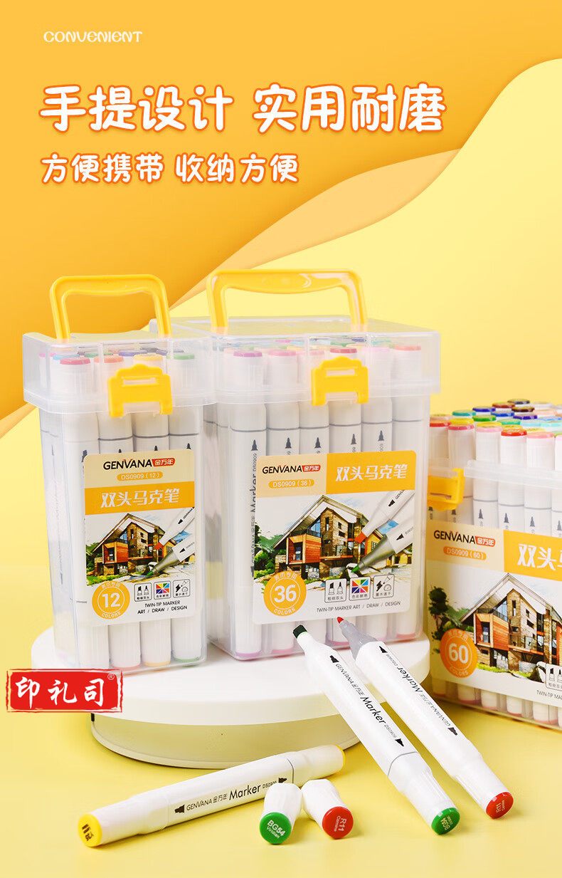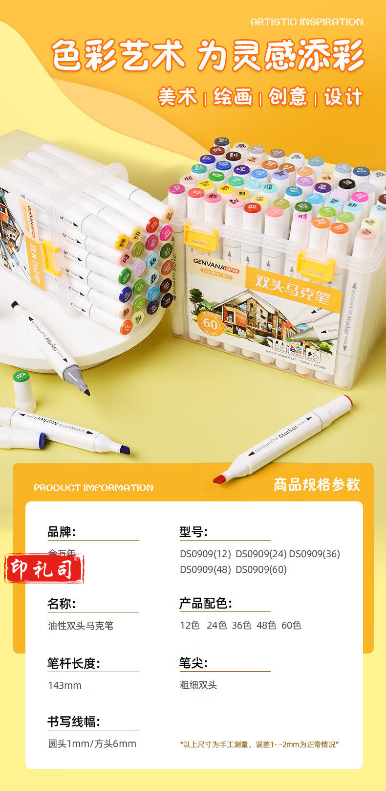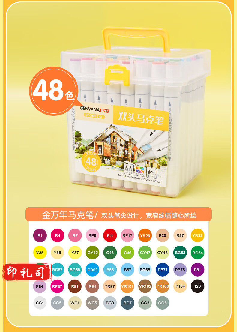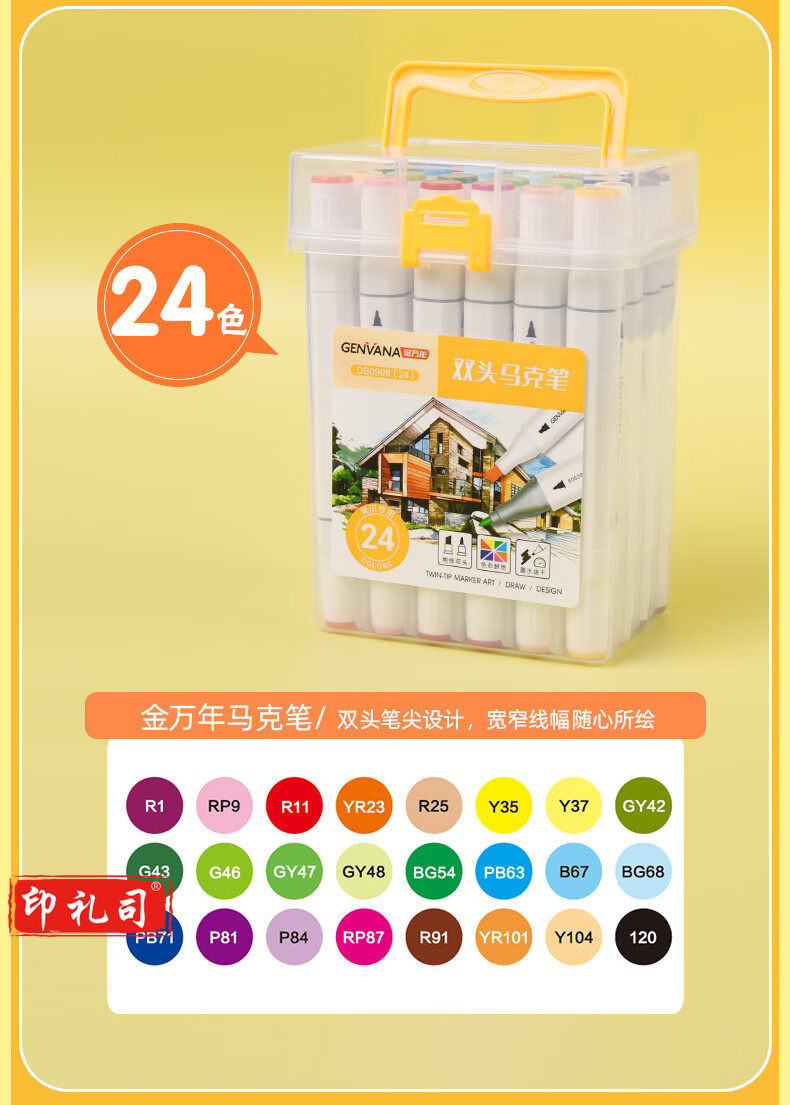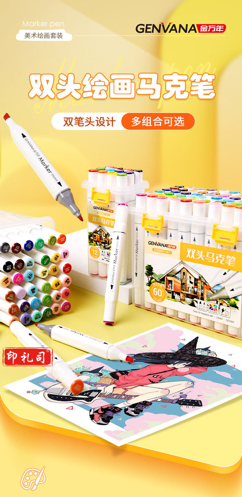 金万年(Genvana)双头马克笔双头48色学生绘画美术专用笔60色不透色油性马克笔套装 【24色套装】圆柱笔杆