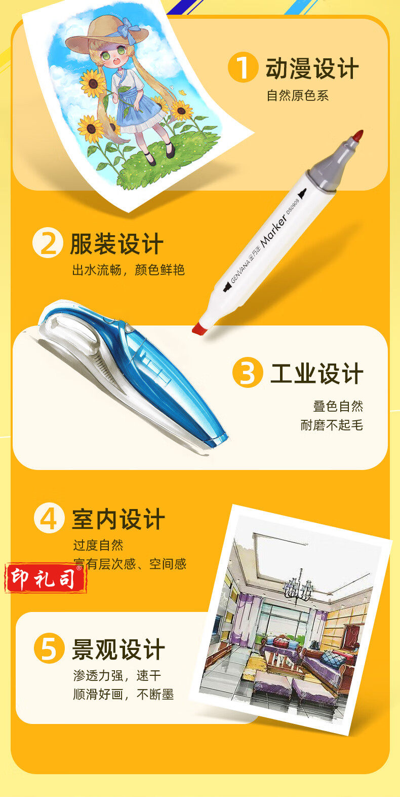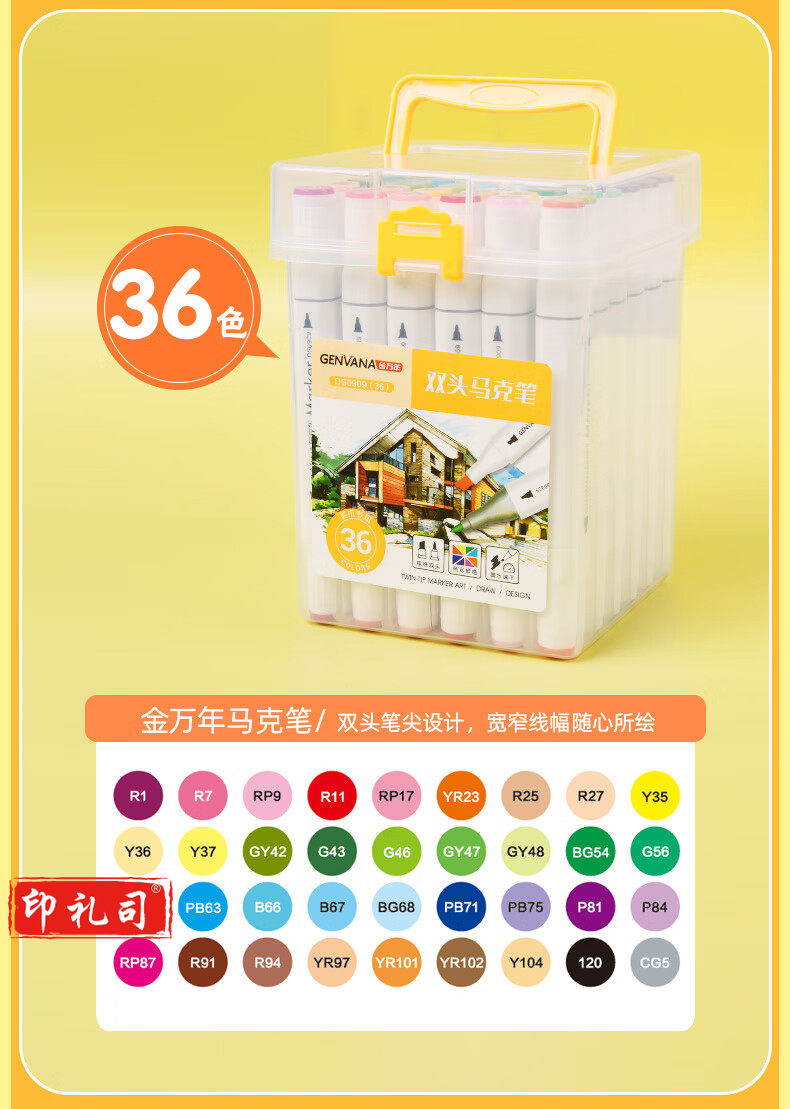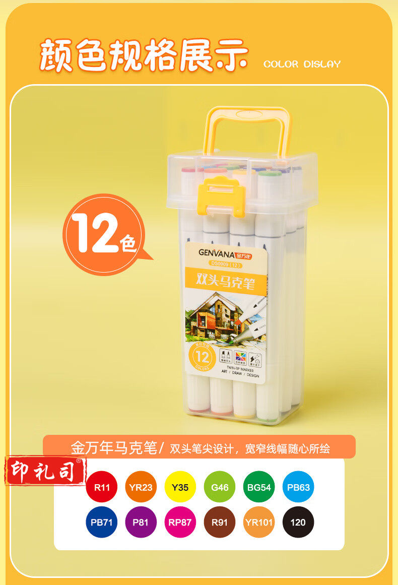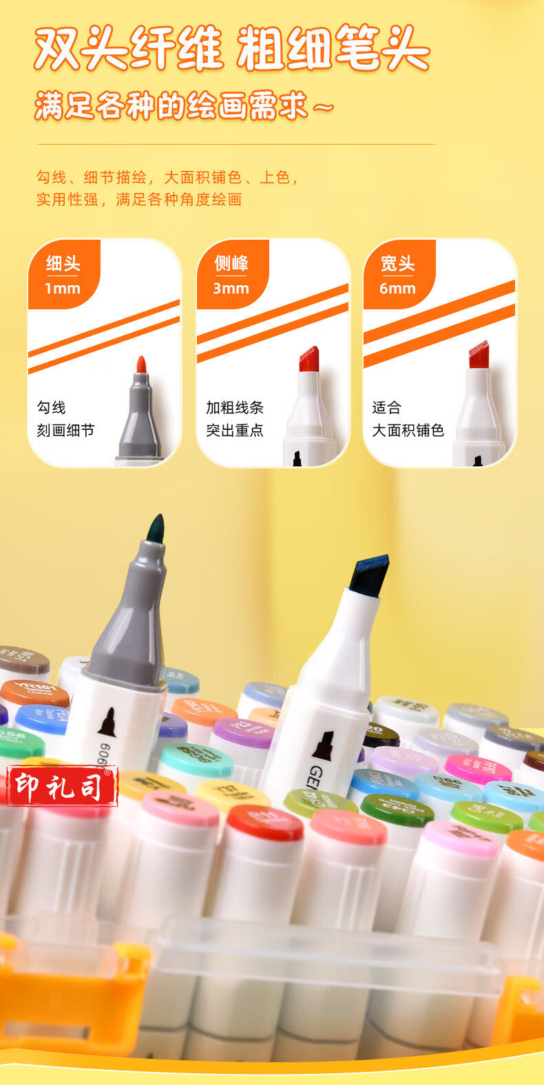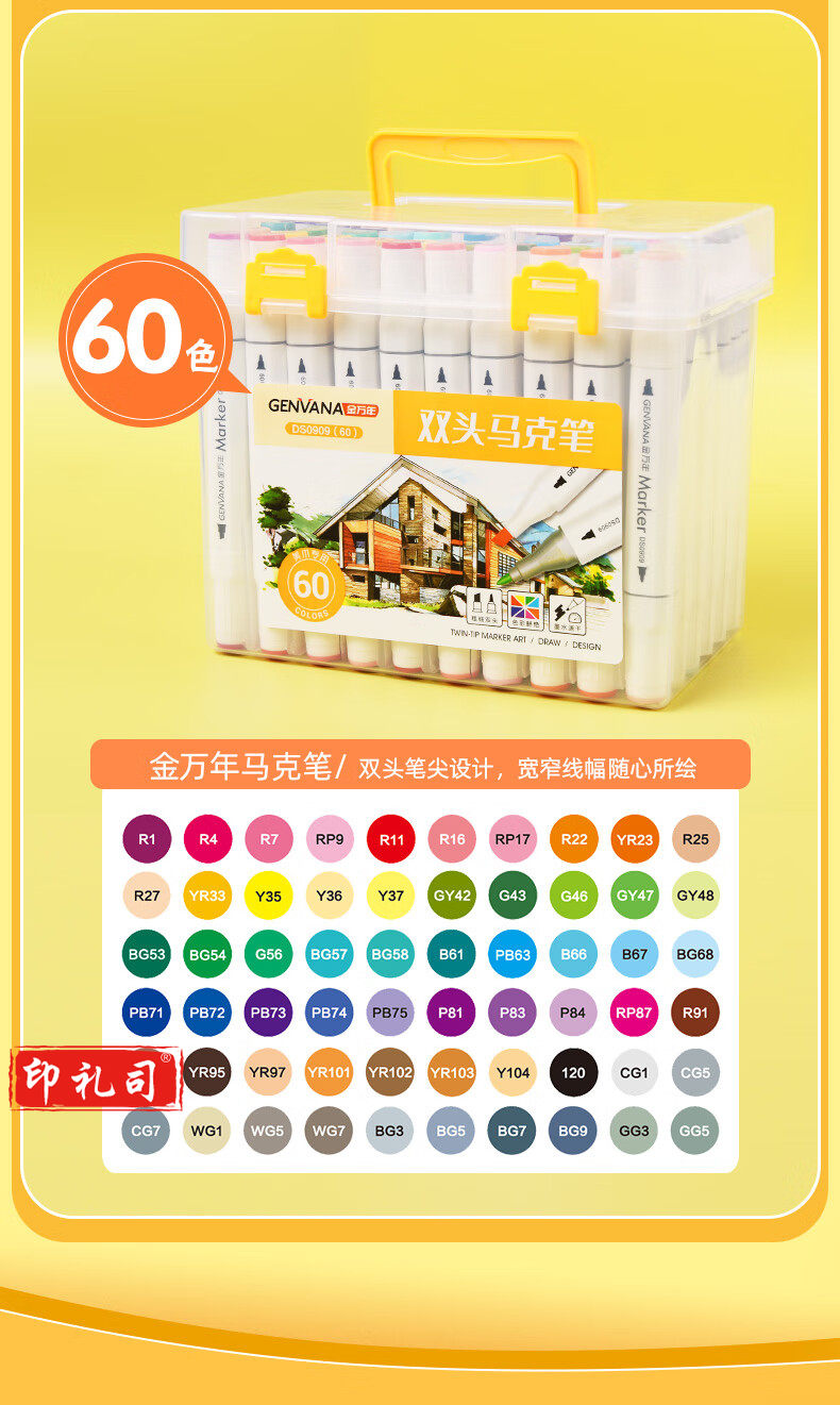 金万年(Genvana)双头马克笔双头48色学生绘画美术专用笔60色不透色油性马克笔套装 【24色套装】圆柱笔杆