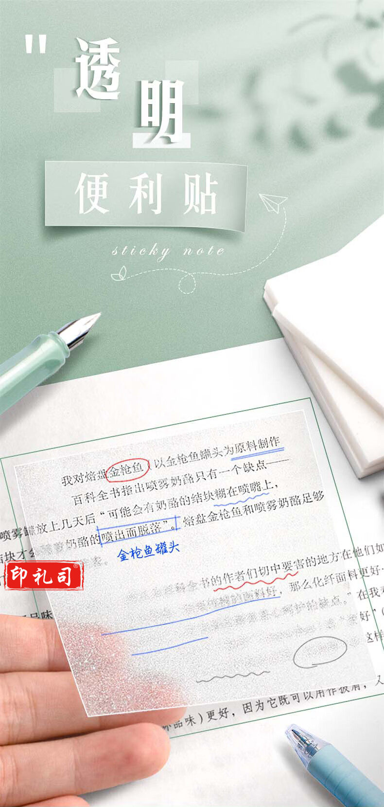 三木 6690 透明亮闪PET便签贴 76*51mm 50张
