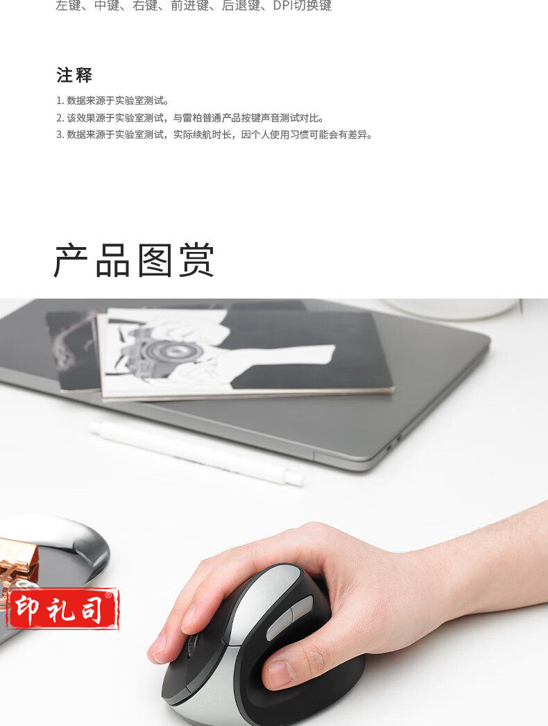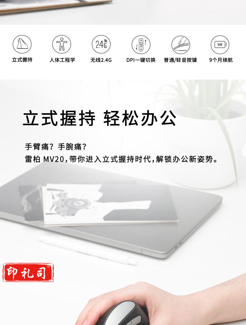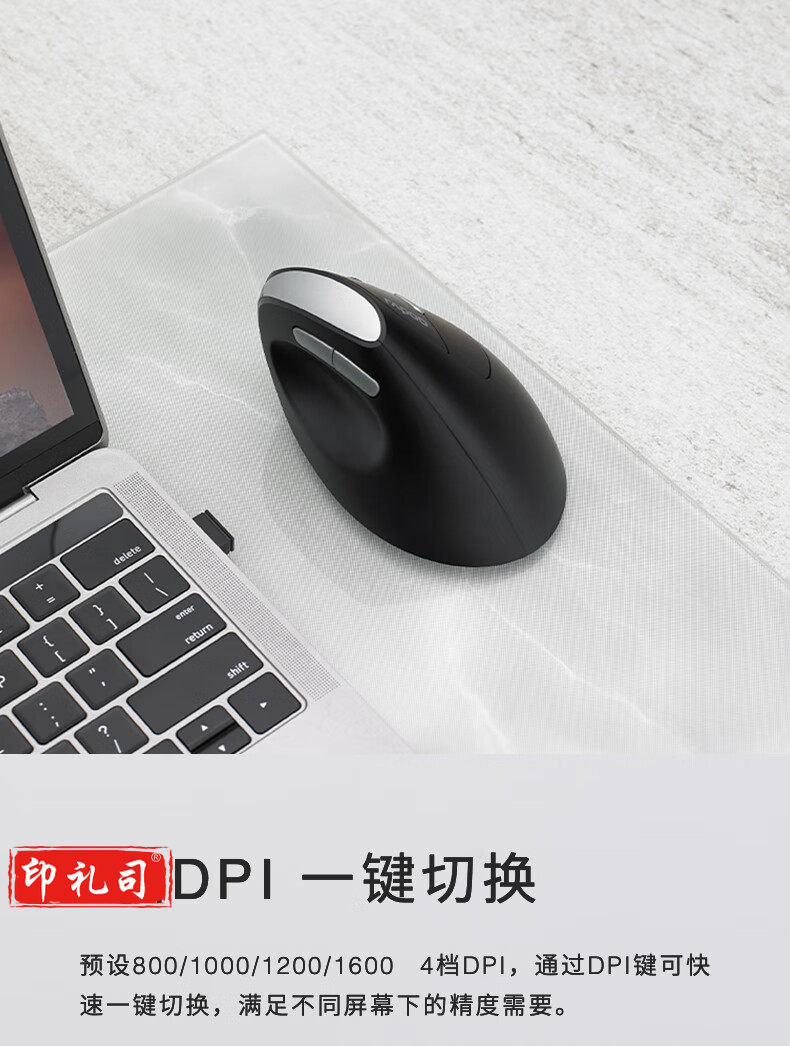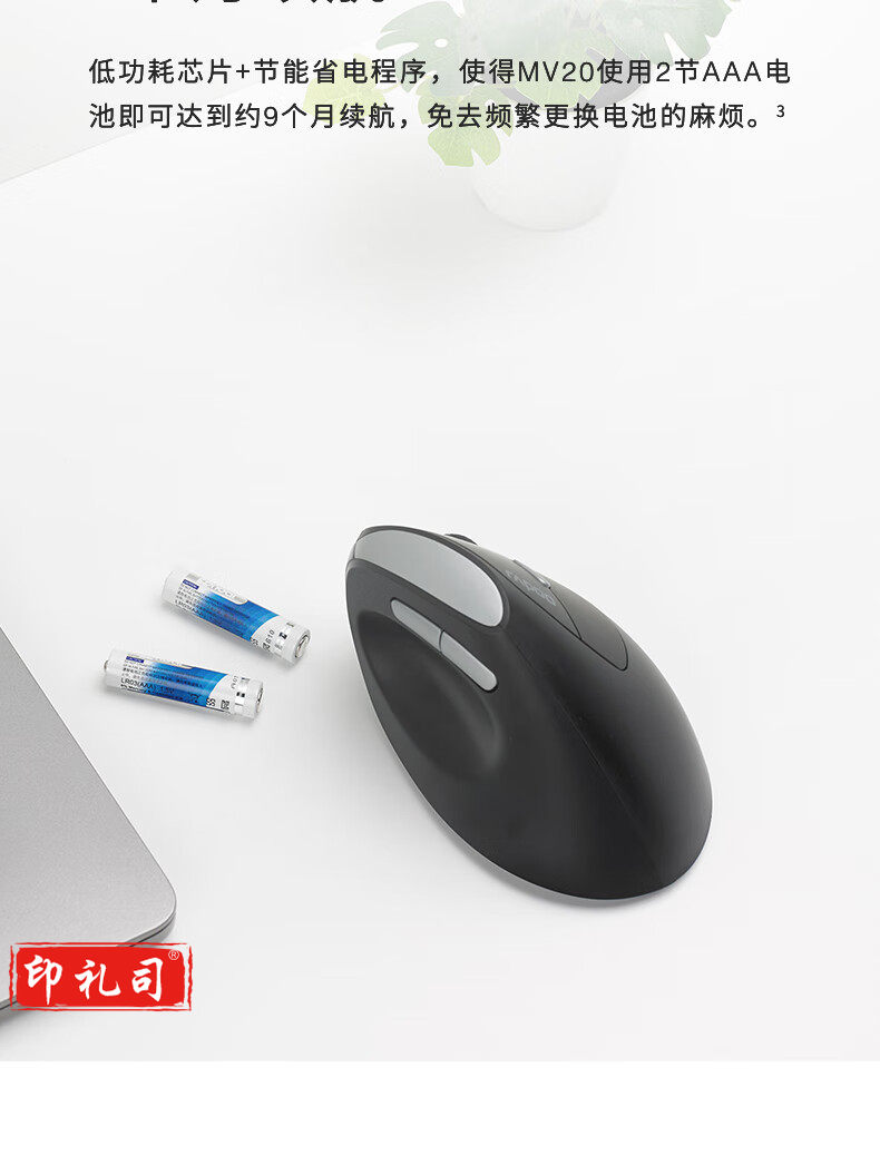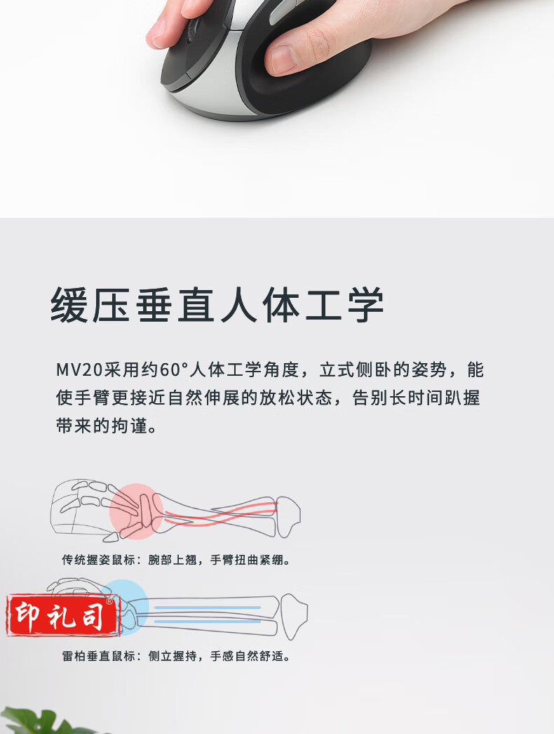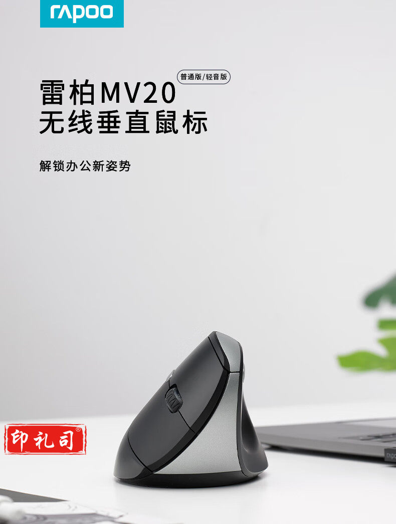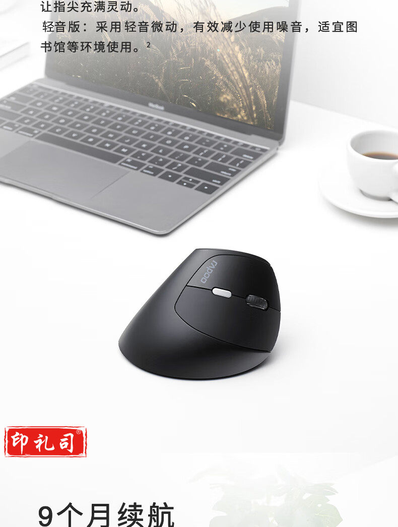 雷柏(Rapoo) MV20轻音版 无线鼠标 垂直鼠标 办公鼠标 轻音鼠标 人体工学 笔记本鼠标 电脑鼠标 黑色