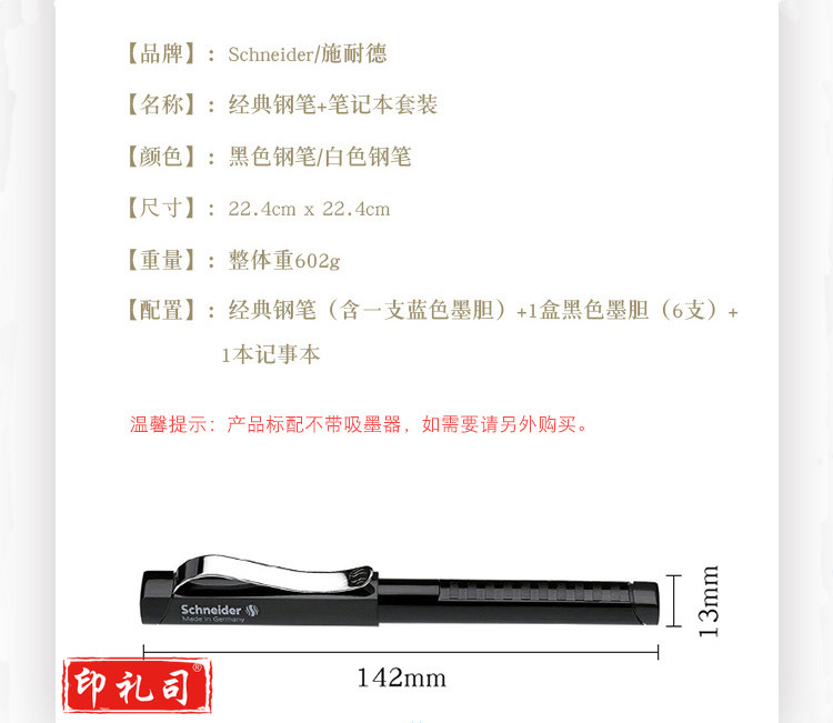 施耐德(Schneider) 钢笔 礼盒装笔记本套装 F尖黑色2290