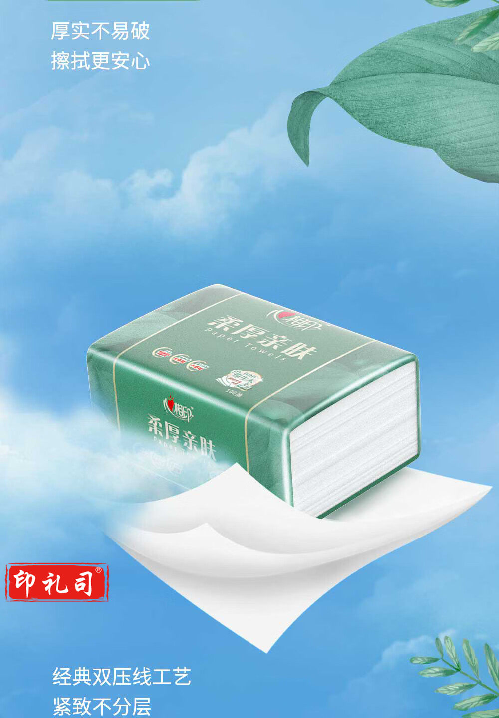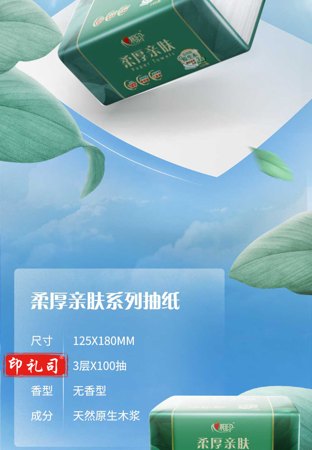 心相印 柔厚亲肤3层100抽18包塑装纸面箱装厚实不易破擦拭更安心 DT100